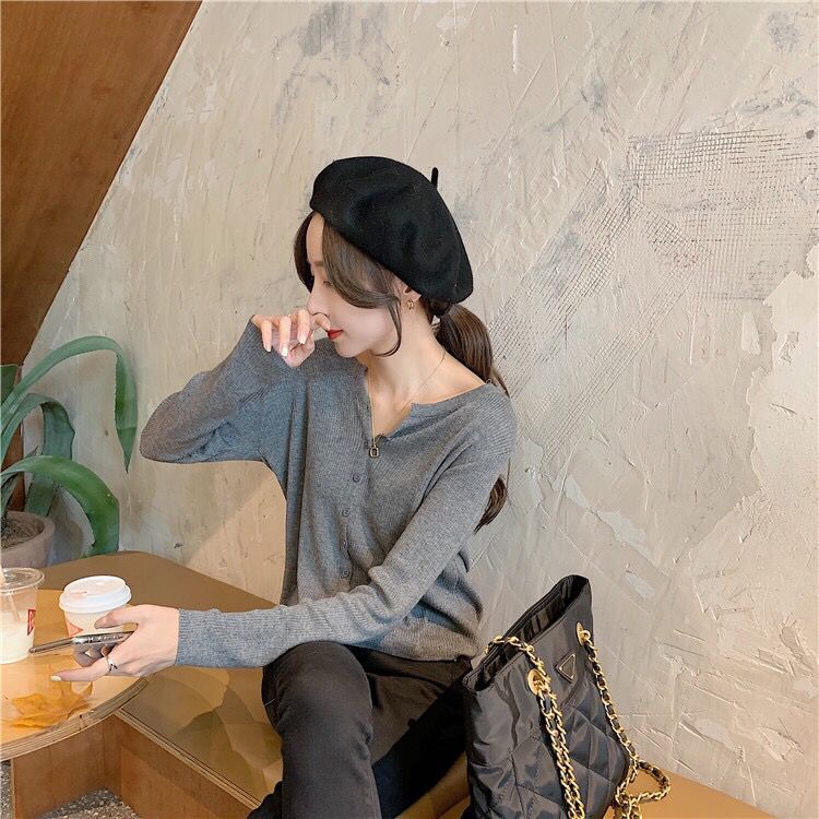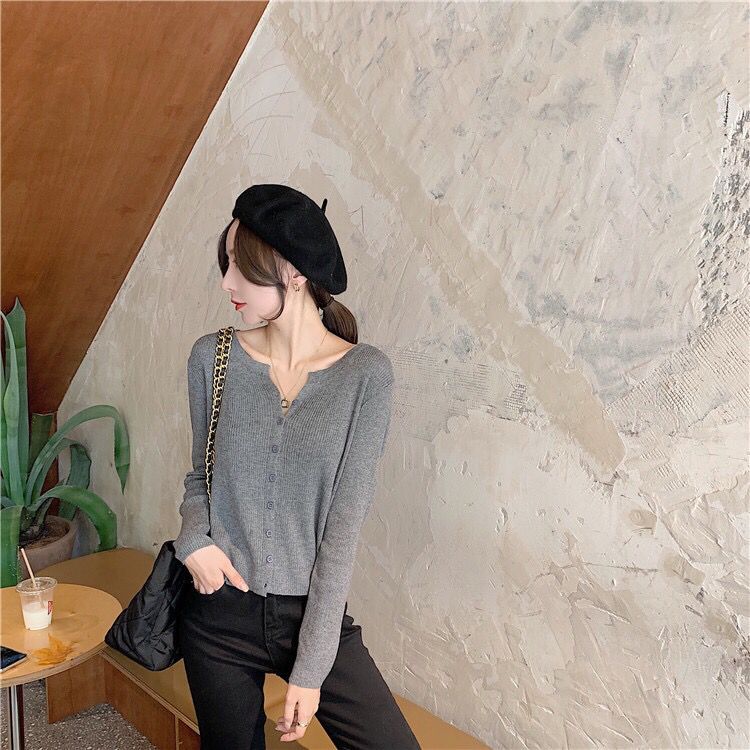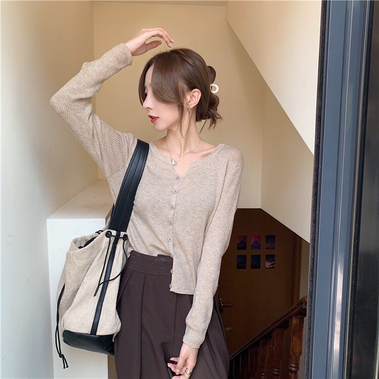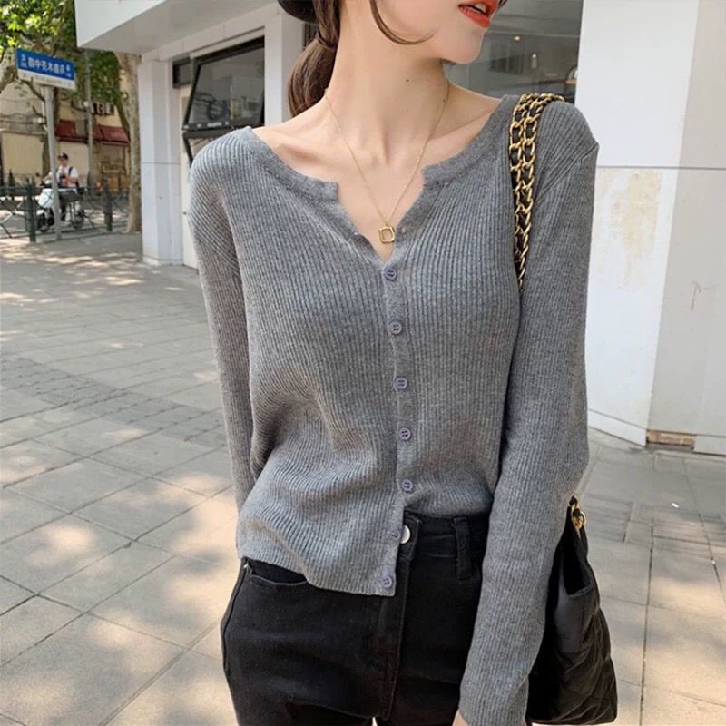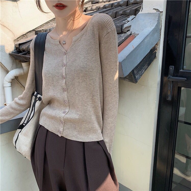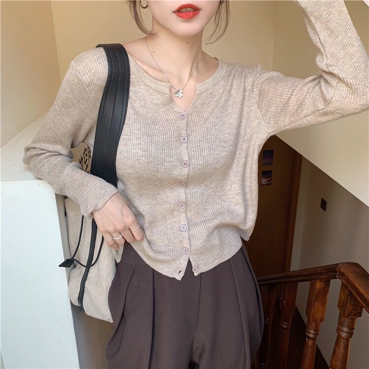 6 울 봄과 가을 V-넥 스웨터 여성용 얇은 긴팔 단색 베이스 탑 짧은 외부 자외선 차단제 재킷 가디건