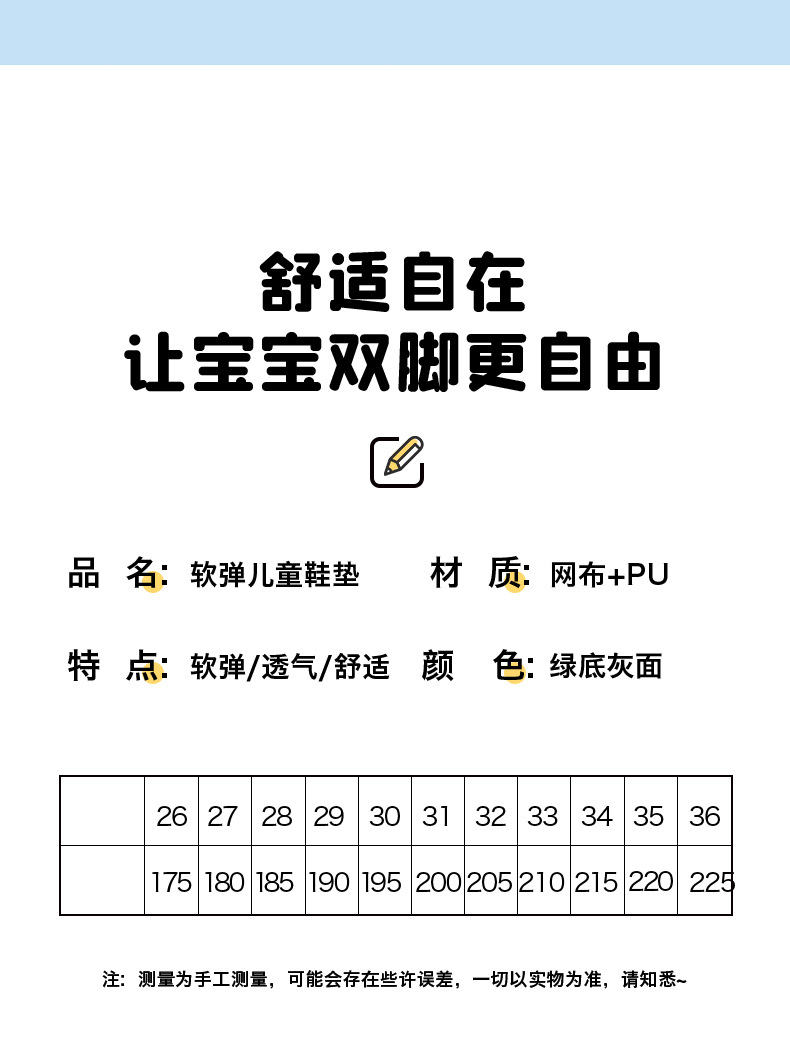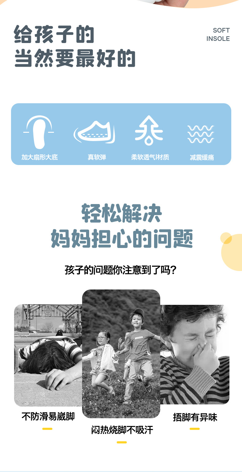 어린이 운동화 쿠션 발 패드 충격 흡수 통기성 땀 흡수 부드럽고 편안한 탈취제 도매공장 직해 폴리스토어 가기