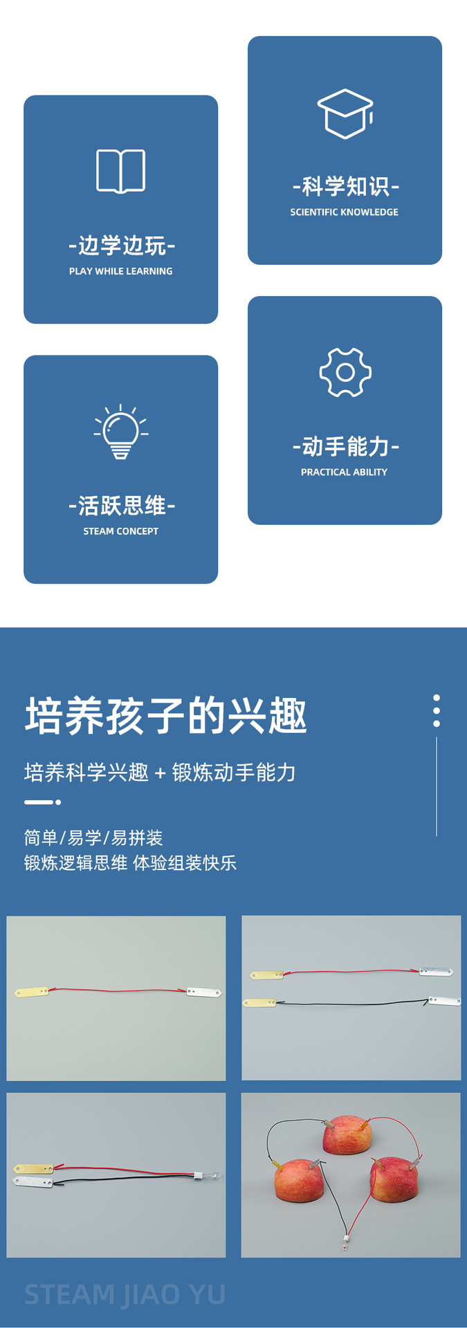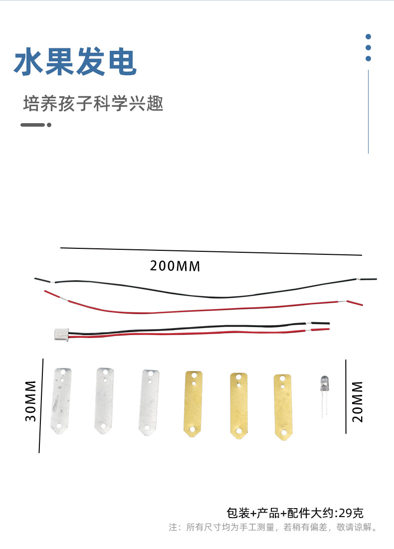 과일 배터리 과학 소량 생산 과일 발전 과학 및 교육 실험 완구 초등 및 중등 학생을위한 수제 DIY 재료 팩스토어 가기