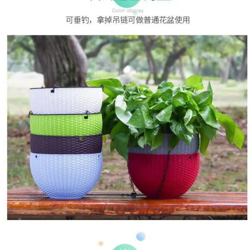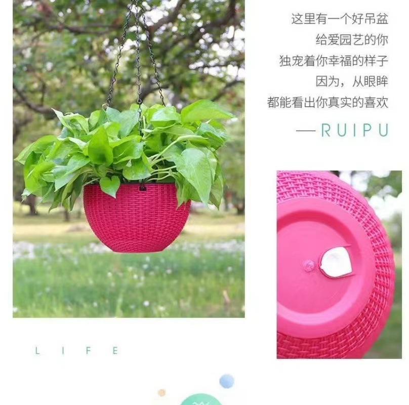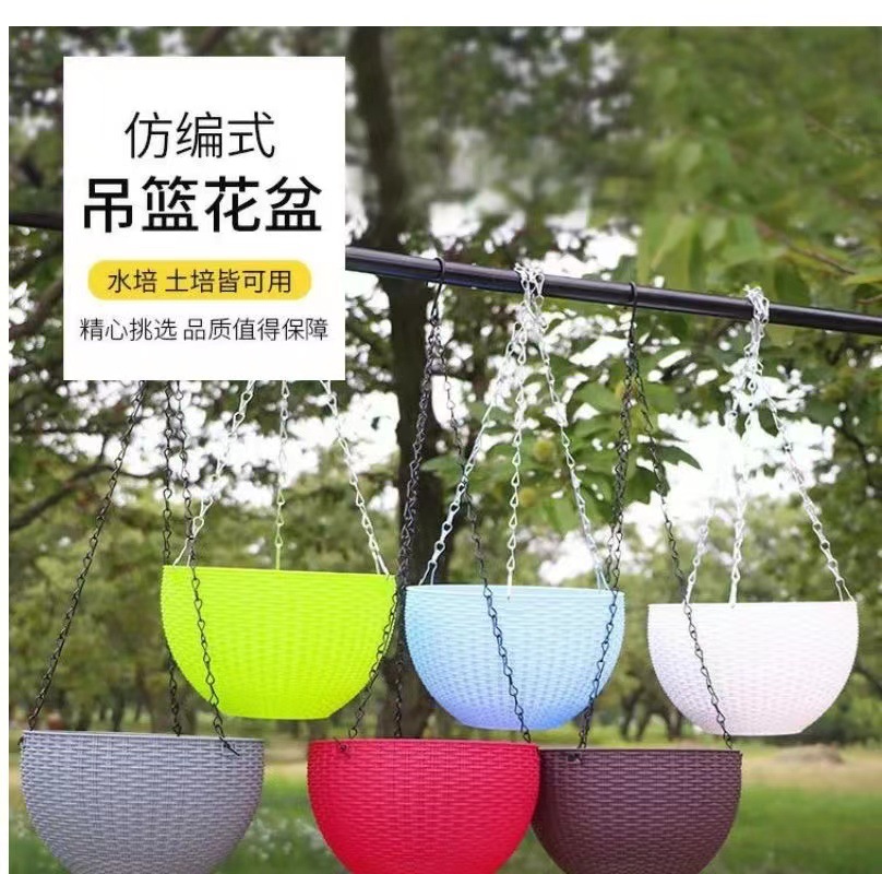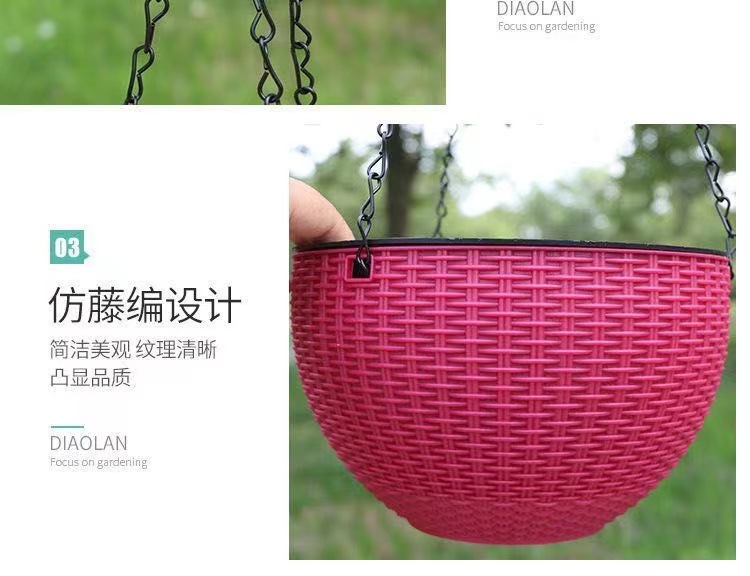 새로운 스타일 간단한 모조 등나무 직조 녹색 장미 교수형 바구니 분지 교수형 홈 녹색 식물 화분에 심은 식물 엽록소 화분 공장 교수형 체인 보내기
