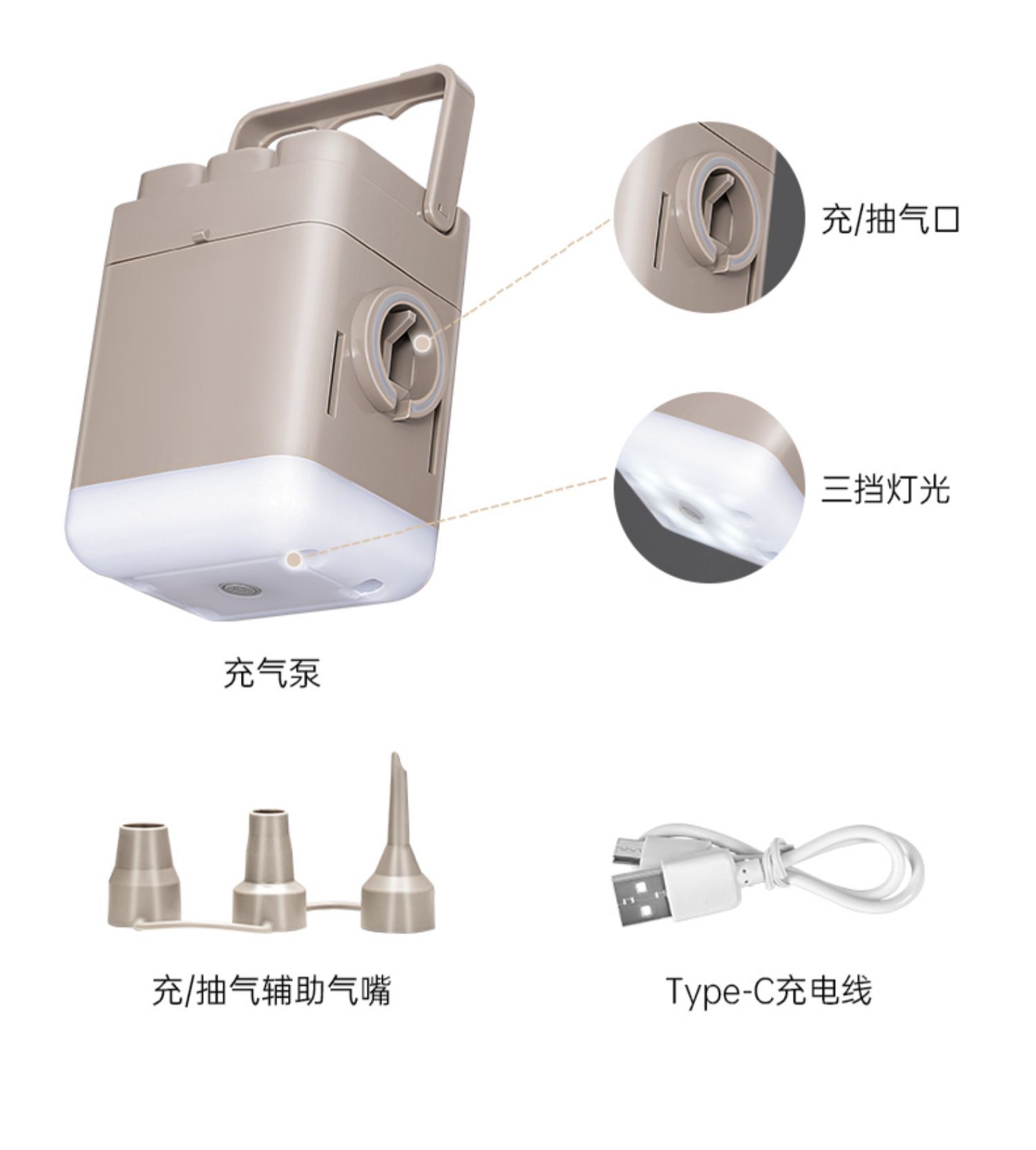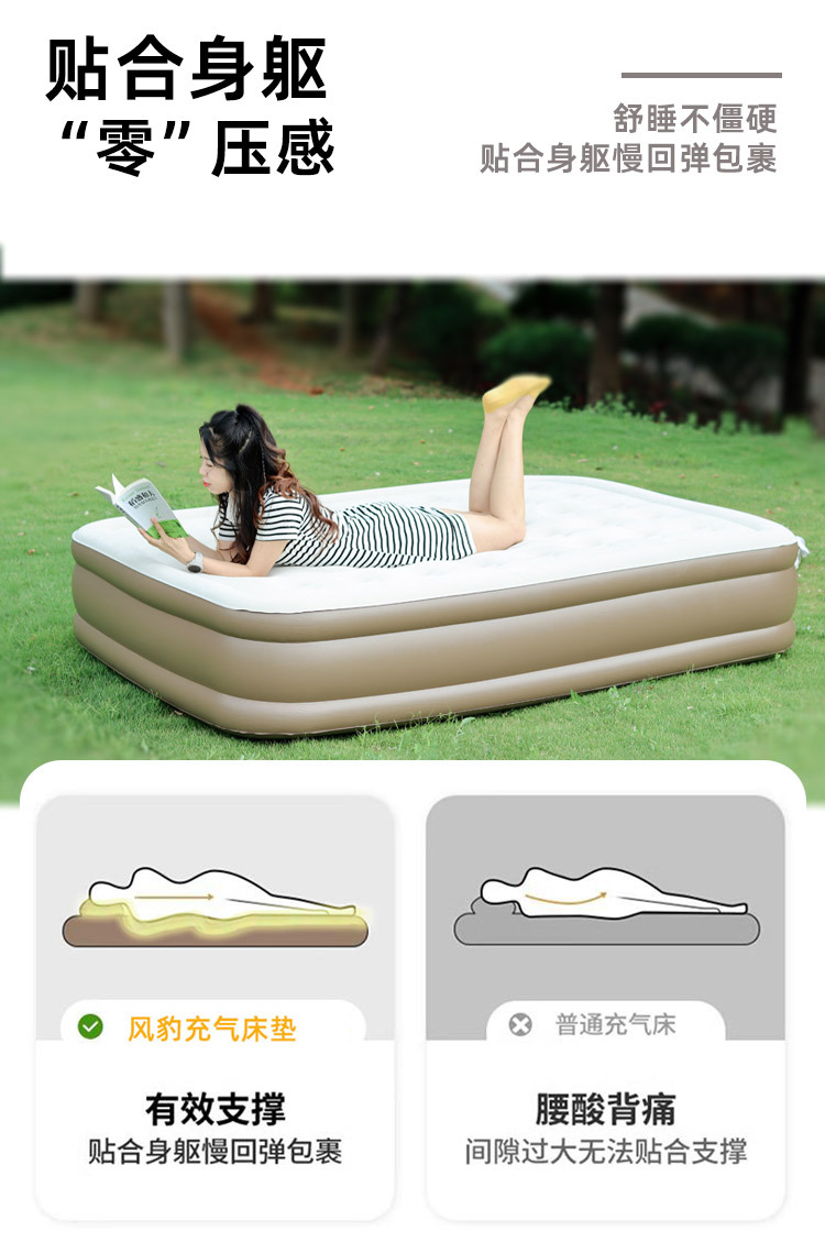 • 라이트 베이지 더블 일반 200*152*25cm 분리형 펌핑 충전 펌프 + 데이터 케이블 + 수리 가방 + 보관 가방