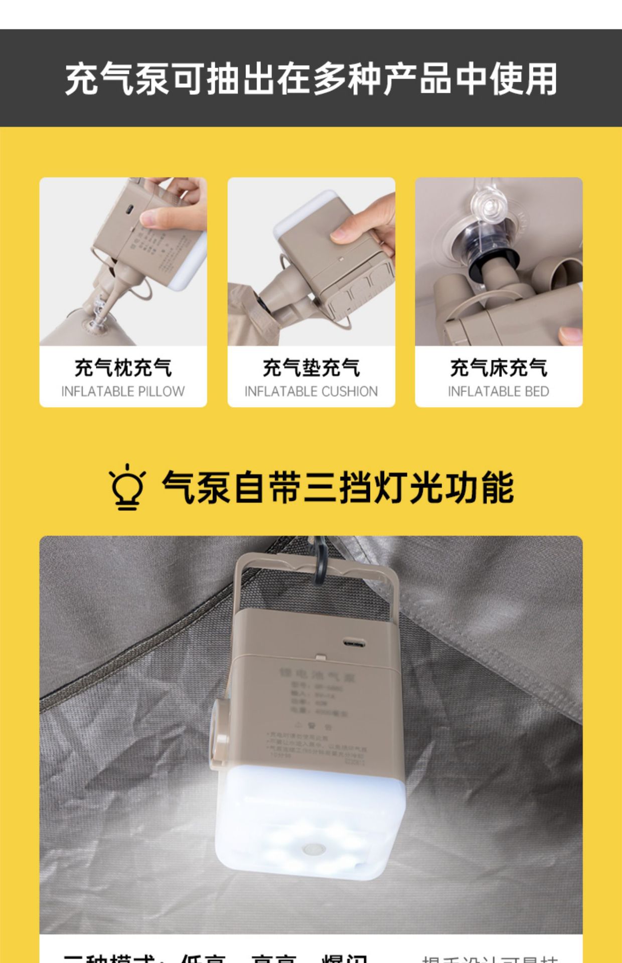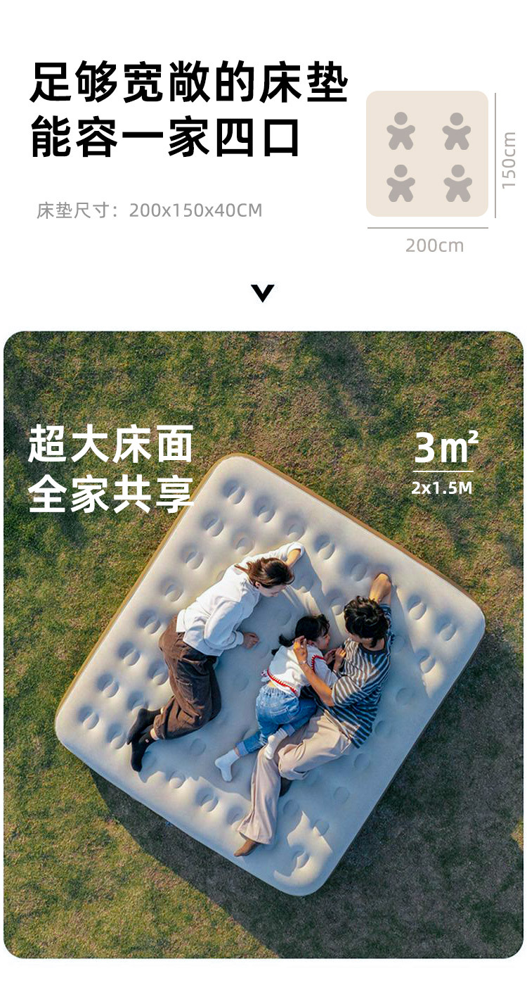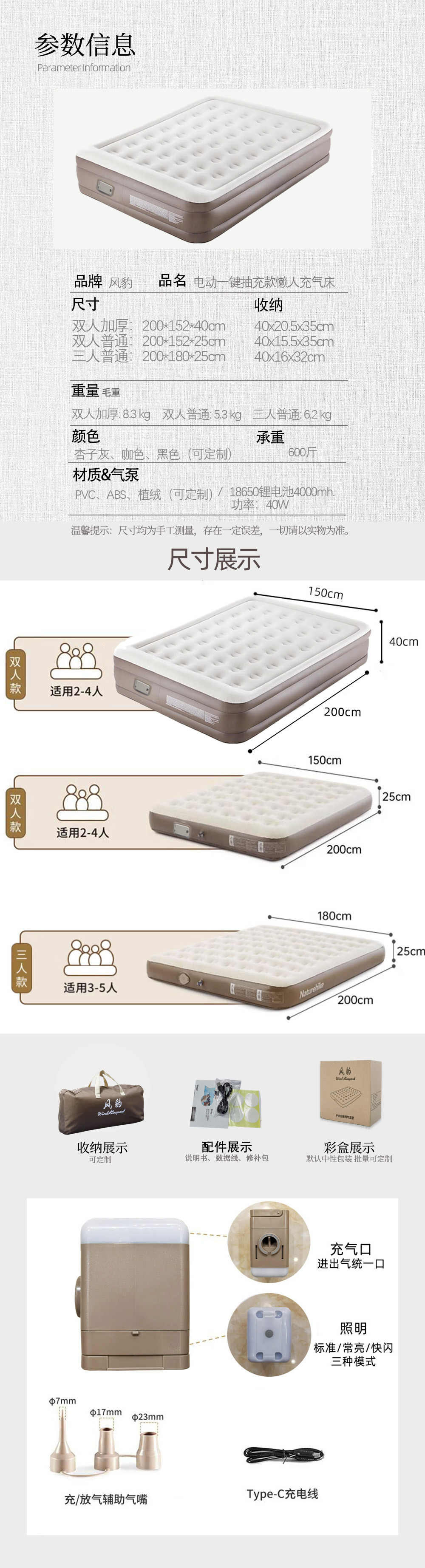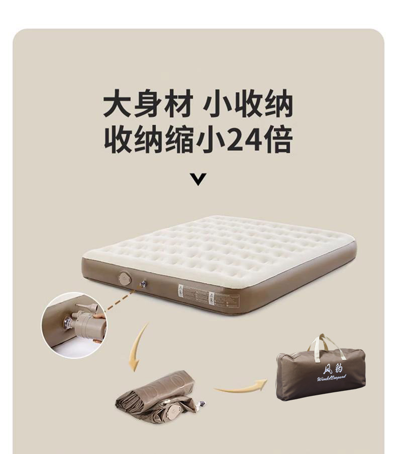 • 라이트 베이지 이중 두껍게 200*152*40cm 분리형 펌핑 충전 펌프 + 데이터 케이블 + 수리 가방 + 보관 가방