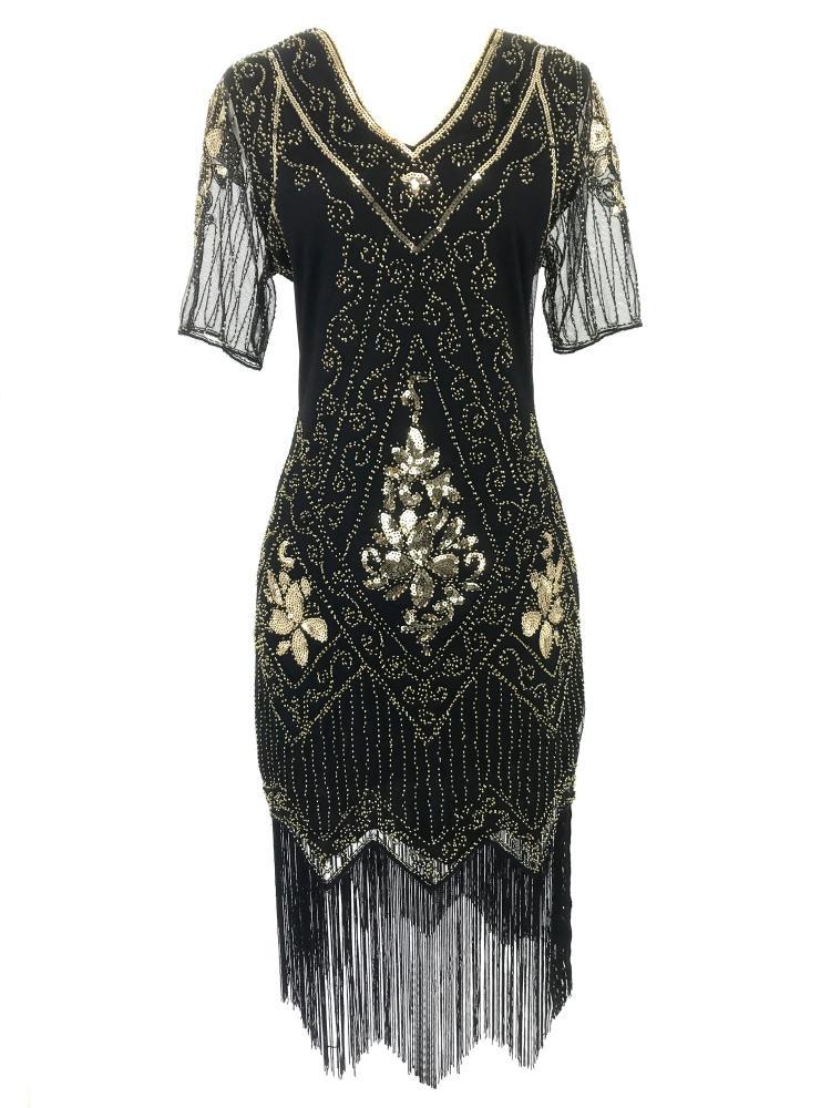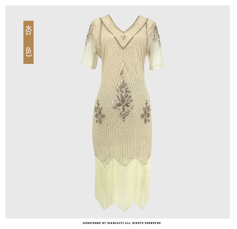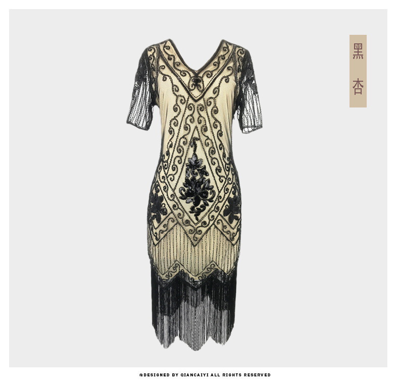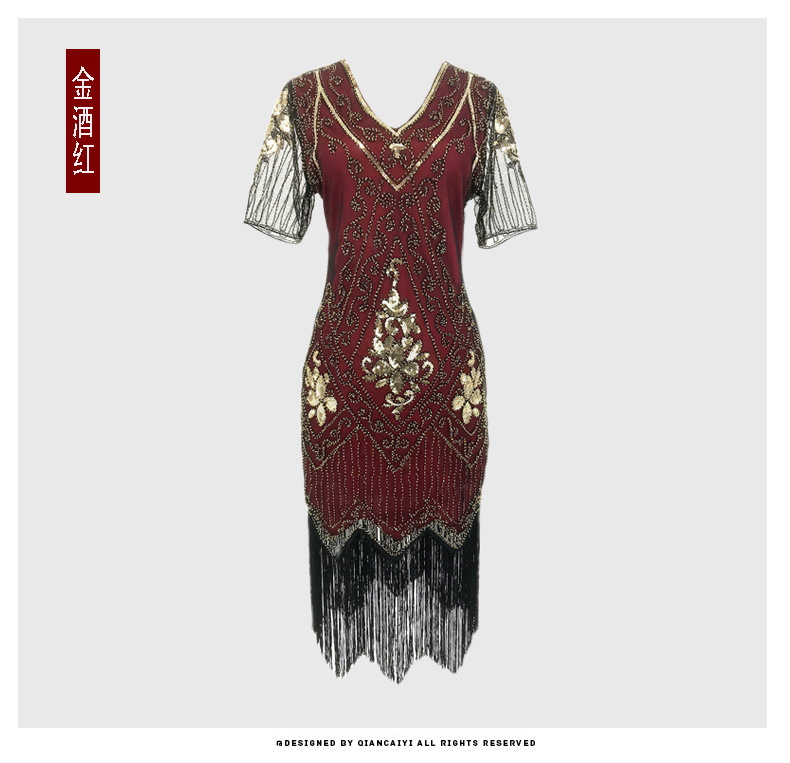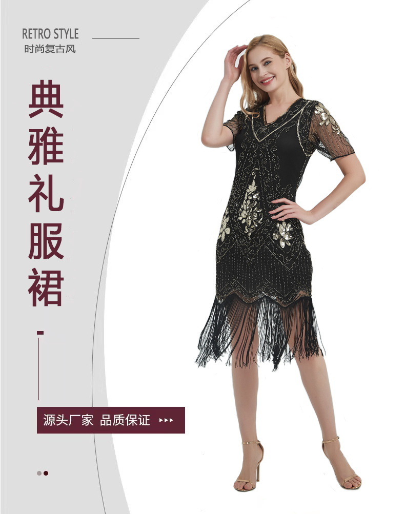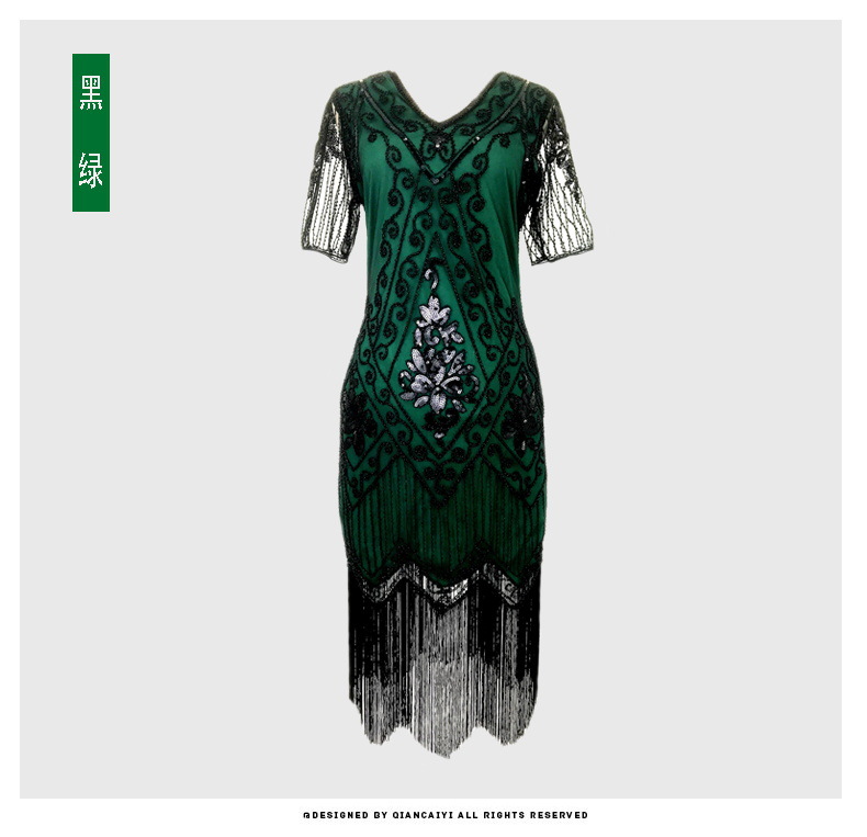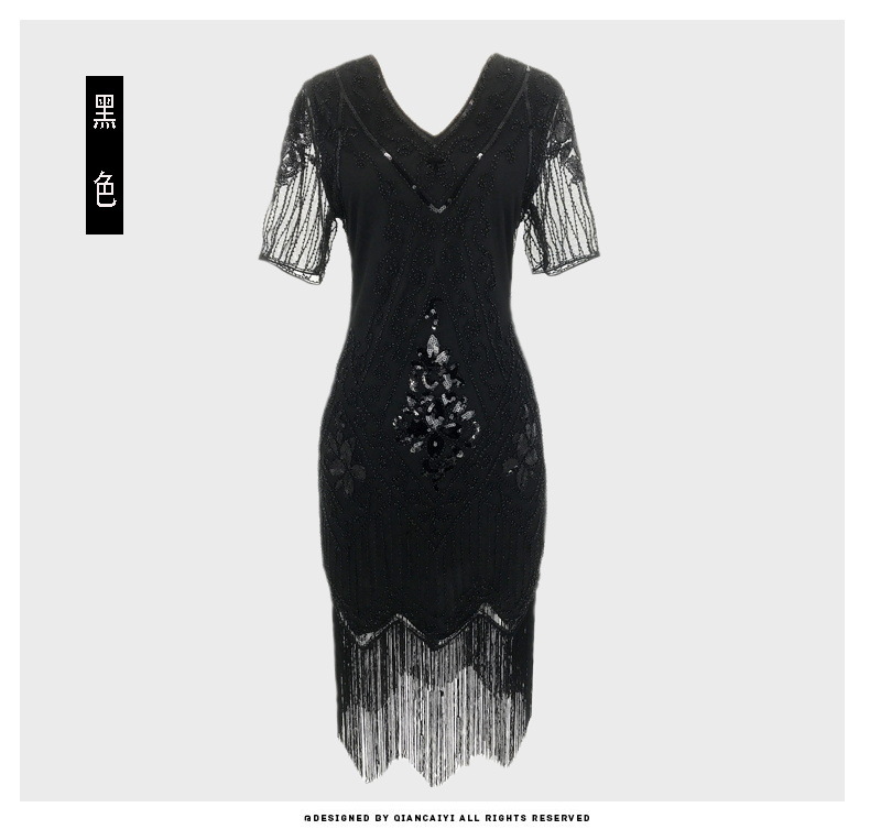 유럽과 미국 크로스 국경 술 파티 저녁 원피스 1920 빈티지 스팽글 비즈 플러스 사이즈 원피스 아마존 폭발 여성