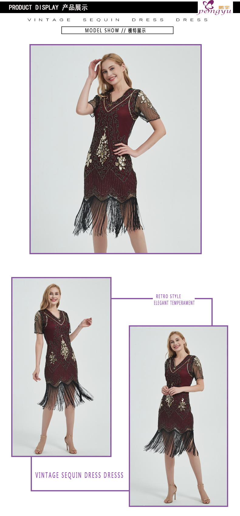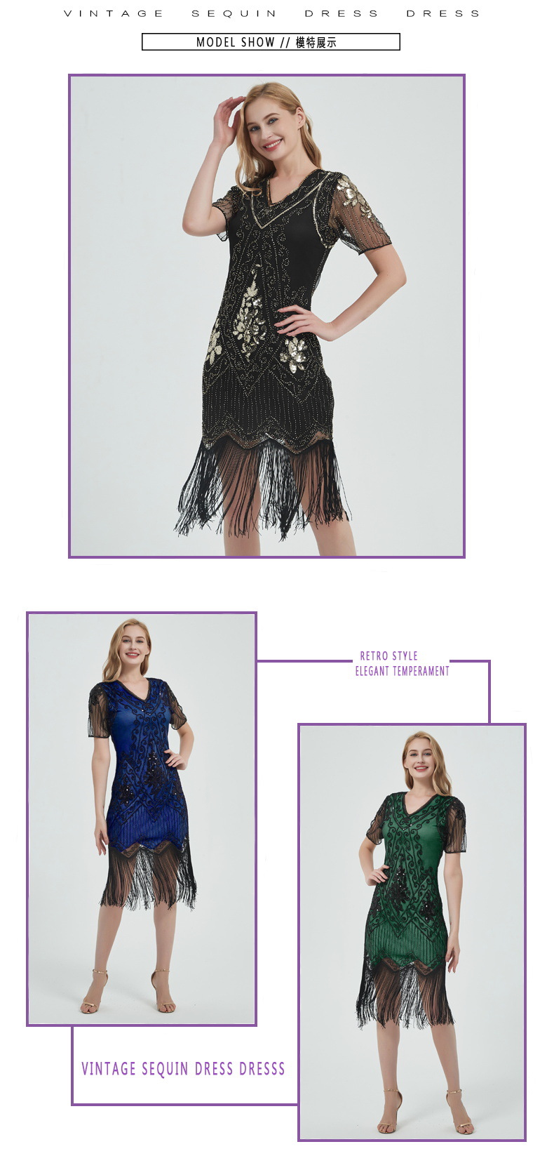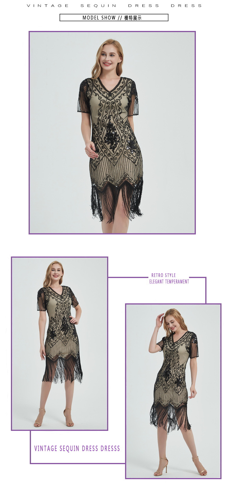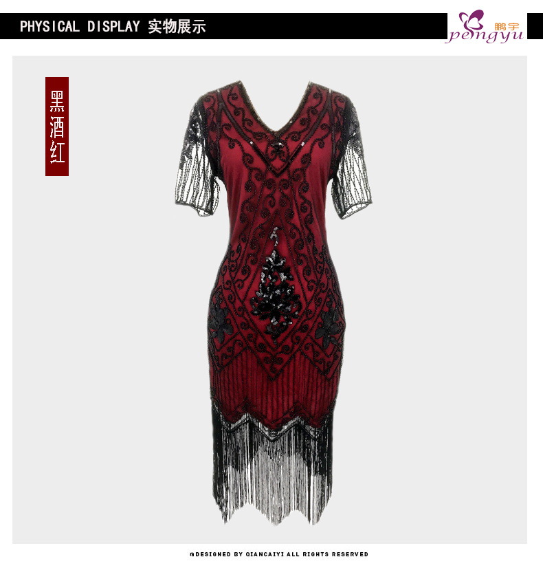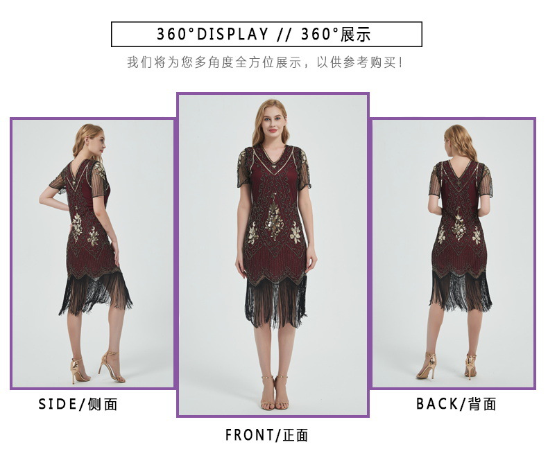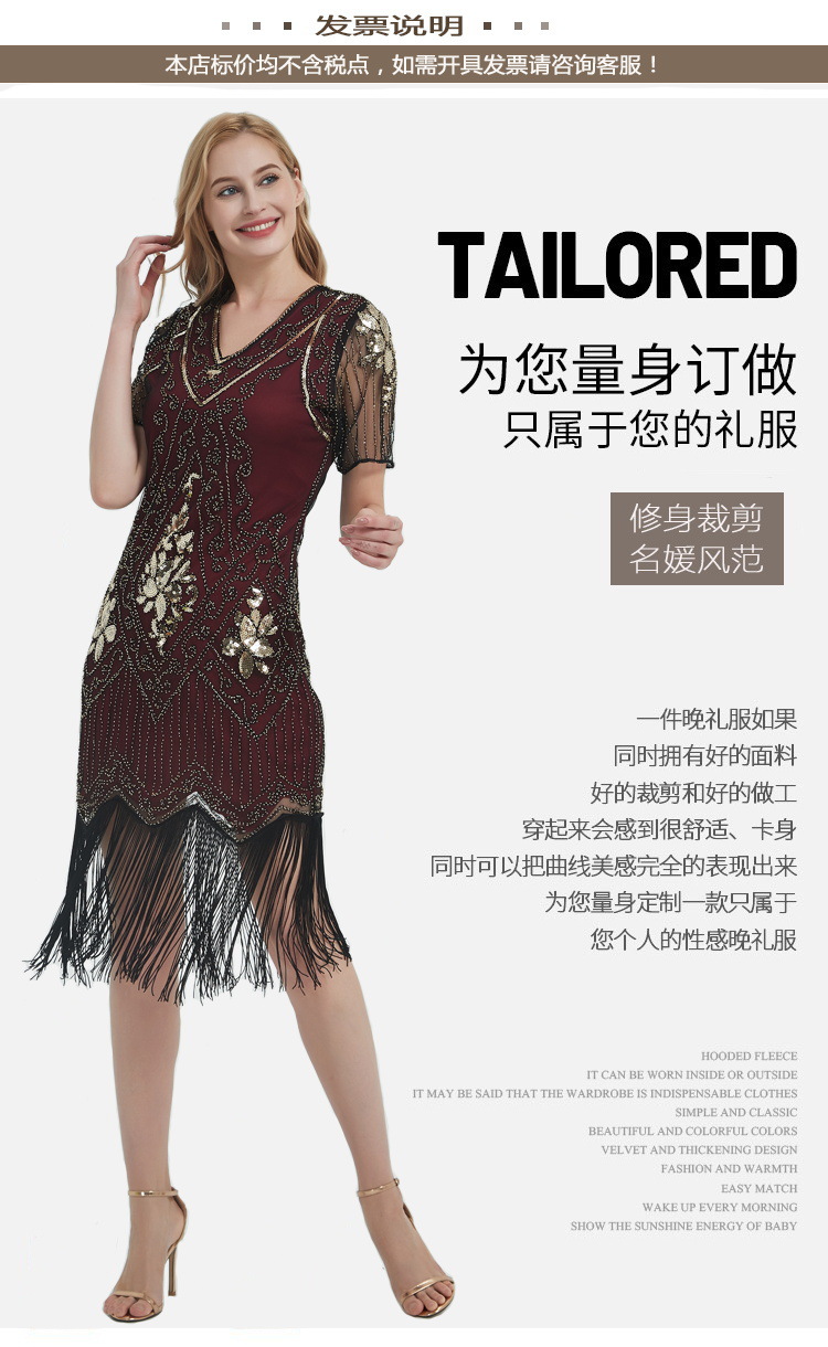 유럽과 미국 크로스 국경 술 파티 저녁 원피스 1920 빈티지 스팽글 비즈 플러스 사이즈 원피스 아마존 폭발 여성스토어 가기
