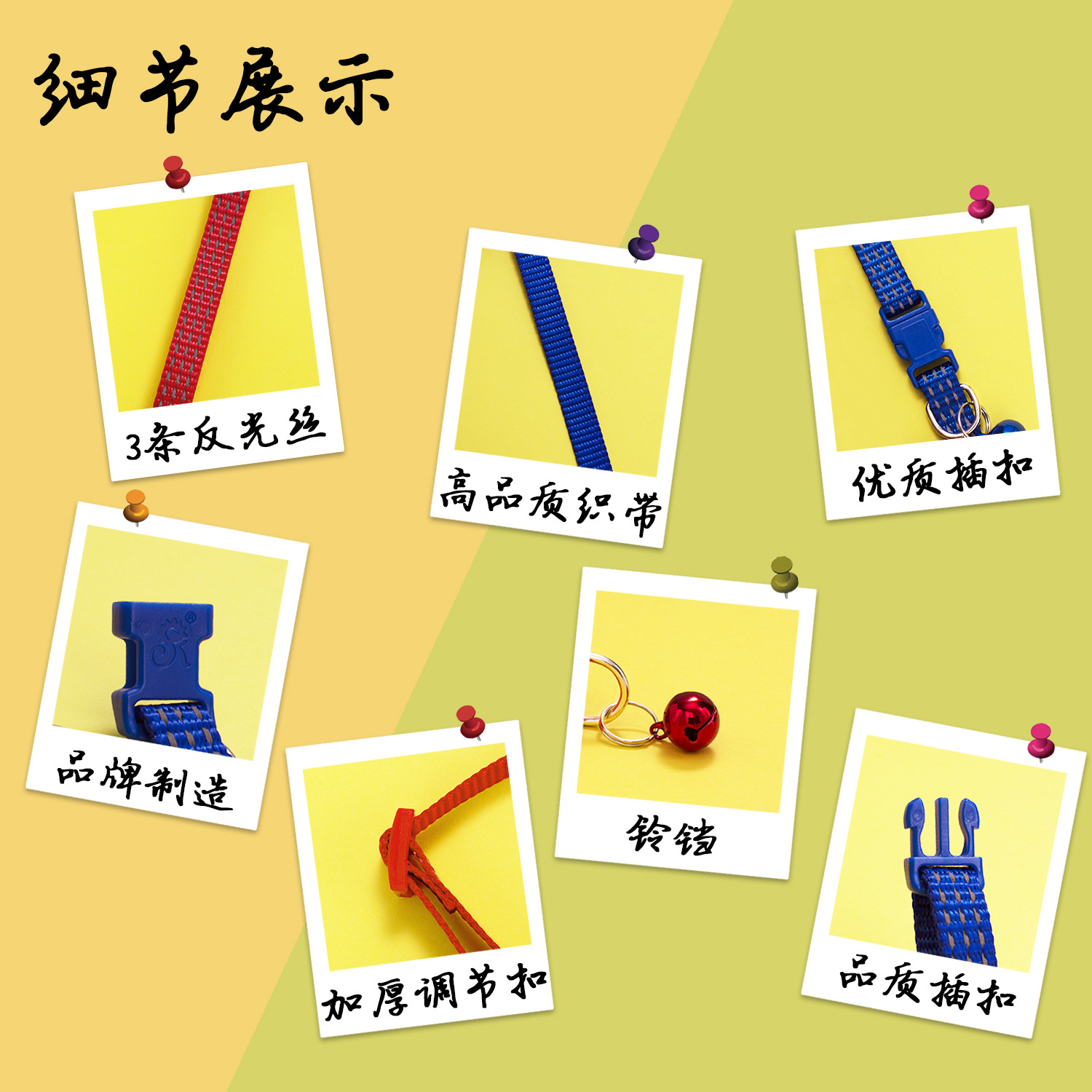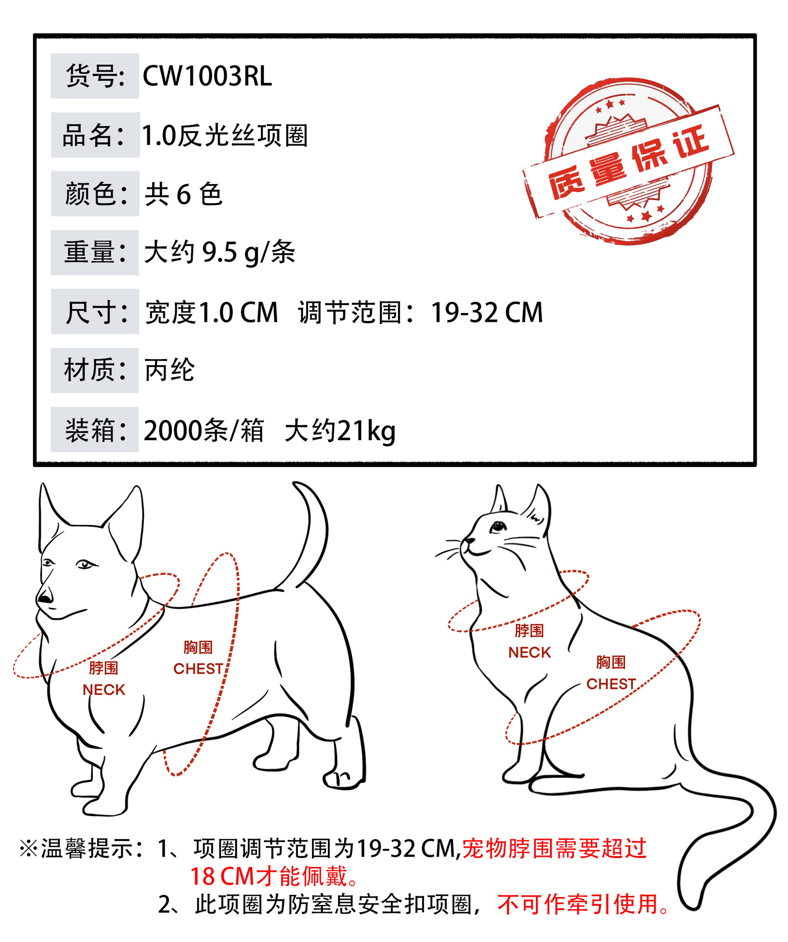 애완 동물 용품 반사 칼라 개 칼라 고양이 칼라 반사 실크 국경 공장 많은 수의 재고 6 색