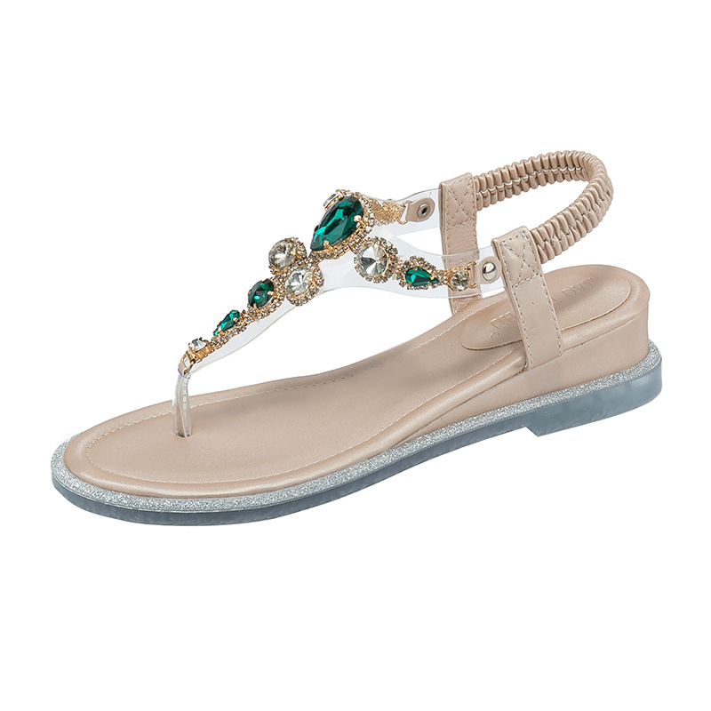 여름 보헤미안 스타일 캐주얼 샤넬 스타일 로마 샌들 라운드 발가락 엿보기 발가락 샌들 여성용 라인 석 웨지 샌들