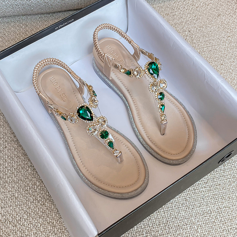 여름 보헤미안 스타일 캐주얼 샤넬 스타일 로마 샌들 라운드 발가락 엿보기 발가락 샌들 여성용 라인 석 웨지 샌들스토어 가기