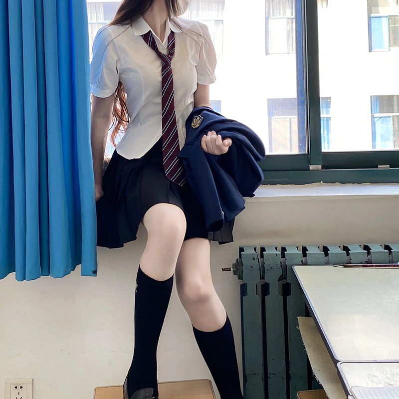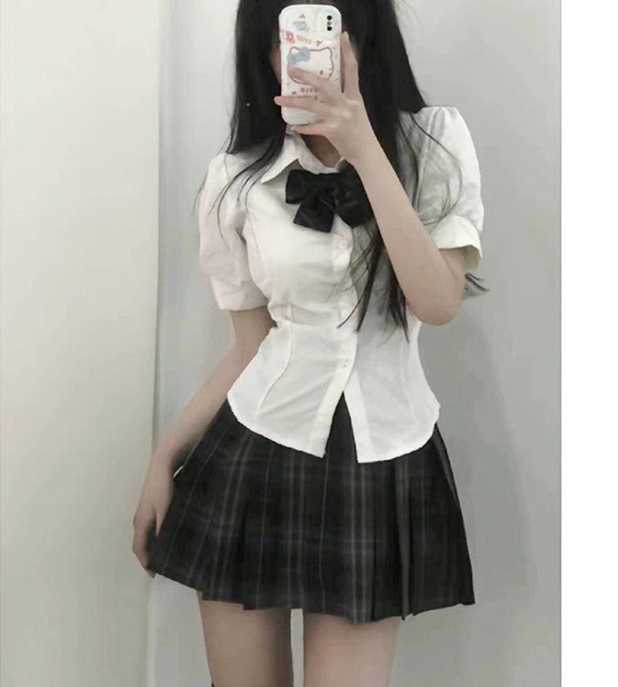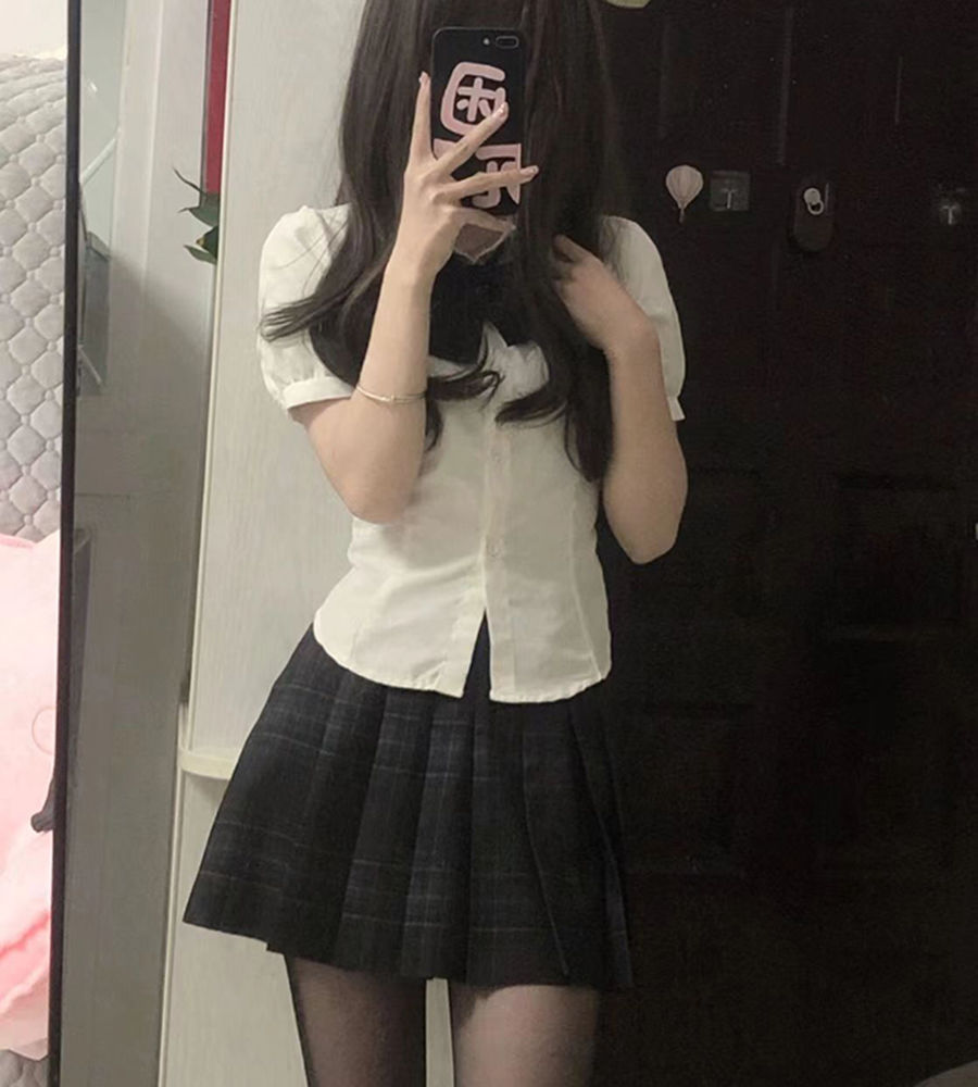 일본의 jk 유니폼 꽉 허리 셔츠 최고 여자의 짧은 소매 원래 대학 스타일 퍼프 슬리브 흰색 셔츠 jk 세트