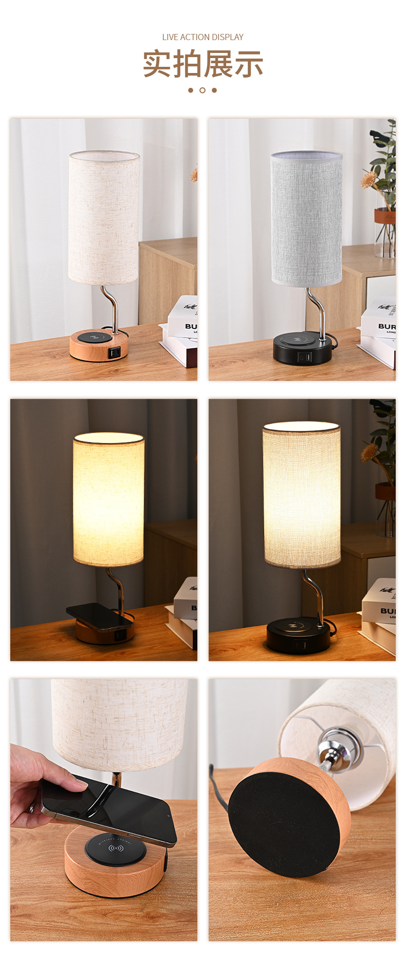 • y 나뭇결 컬러 베이스 5W 무선 충전 + 단일 USB 포트