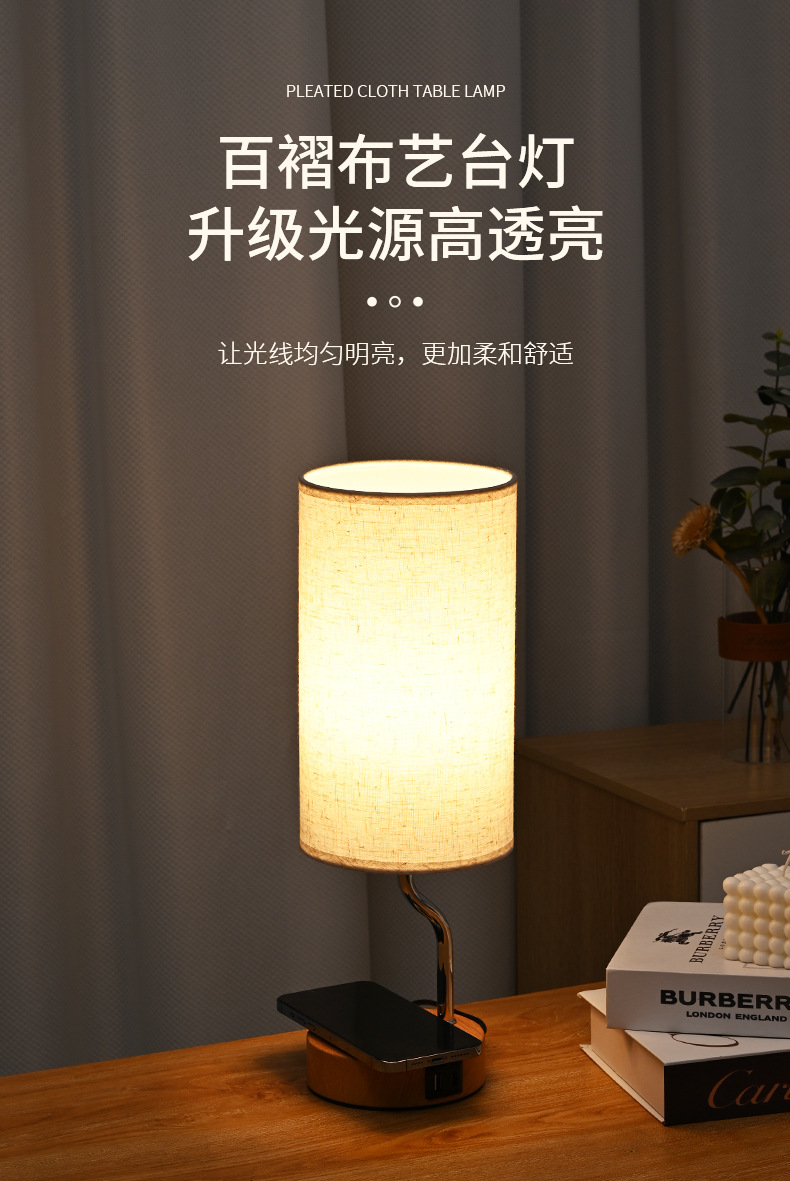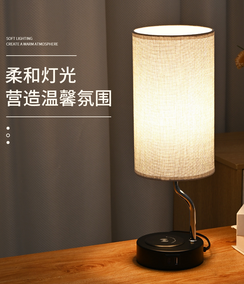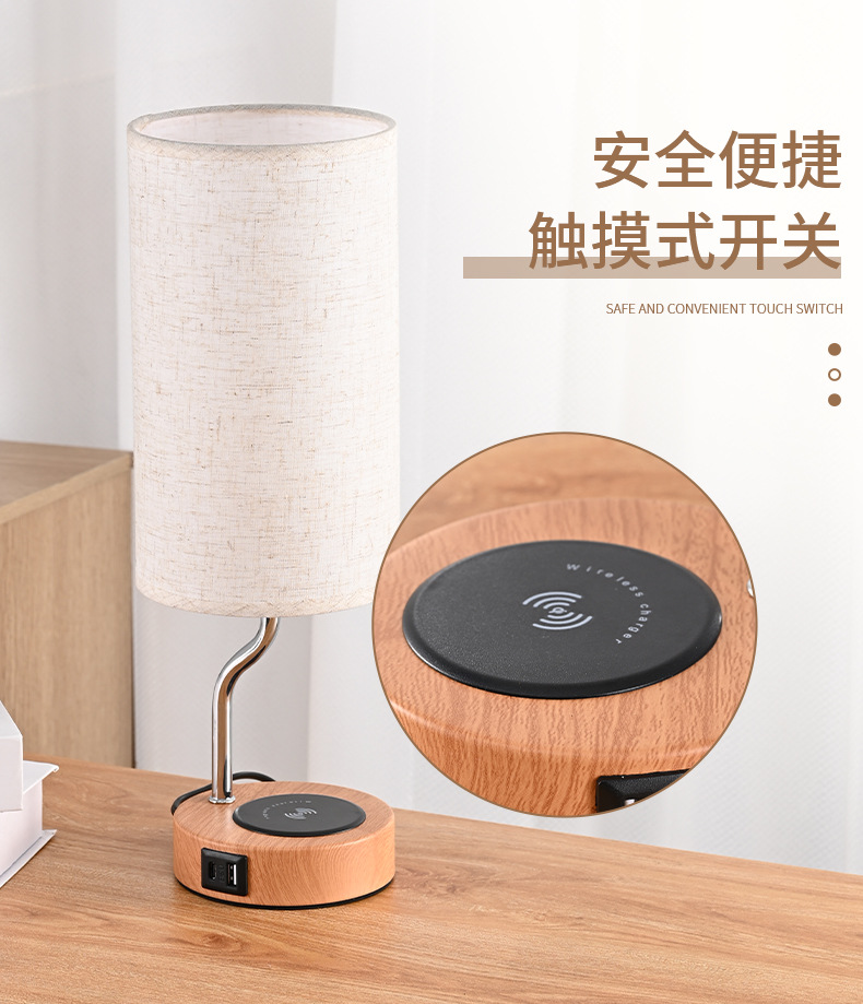 크로스 보더 LED 침대 옆 탁자 램프 무선 충전 천 커버 테이블 램프 US 게이지 소켓 터치 테이블 램프 3 단 디밍 테이블 램프