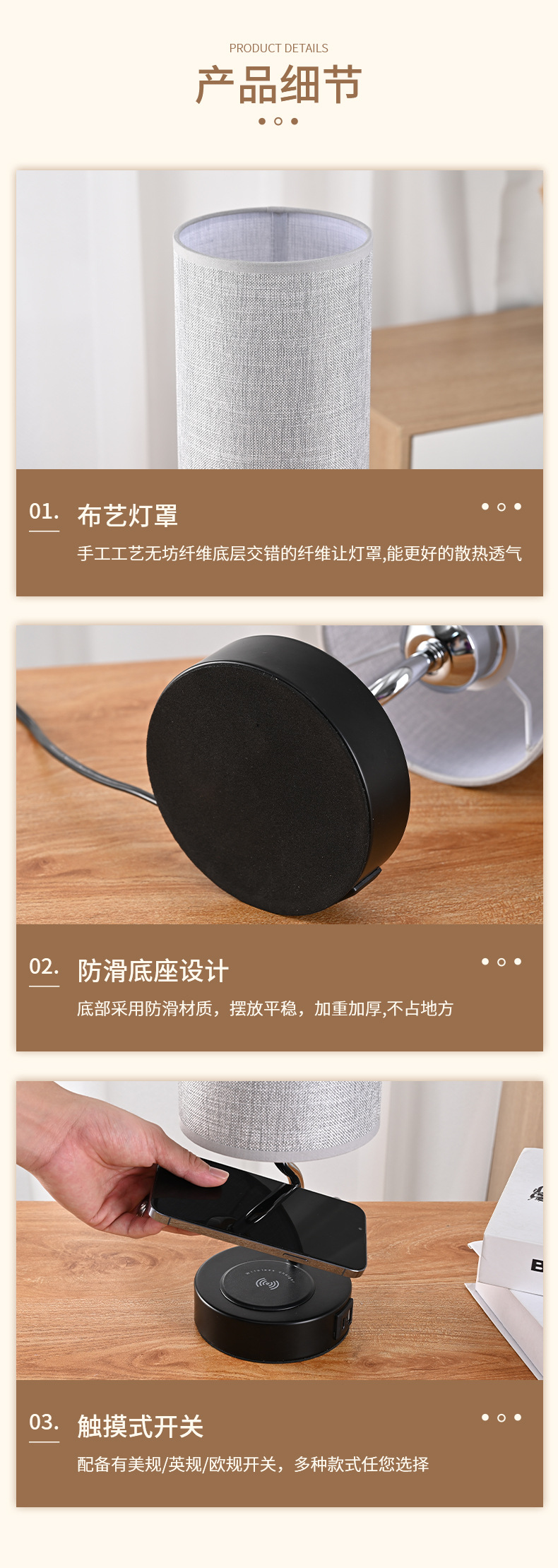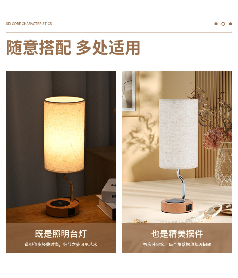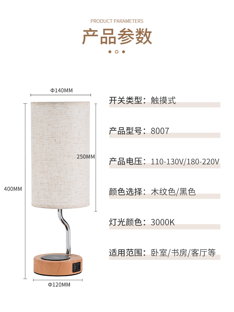 크로스 보더 LED 침대 옆 탁자 램프 무선 충전 천 커버 테이블 램프 US 게이지 소켓 터치 테이블 램프 3 단 디밍 테이블 램프스토어 가기