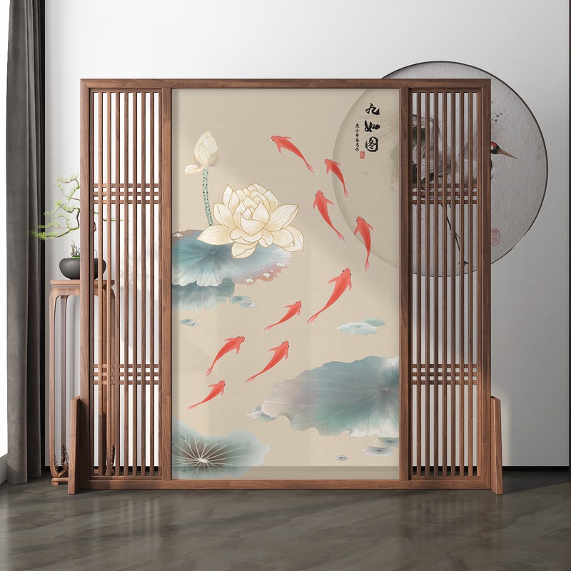 중국 스타일 스크린 파티션 거실 침실 가정용 현대 간단한 입구 현관 단단한 목재 선 스님 나인 피쉬 시트 스크린