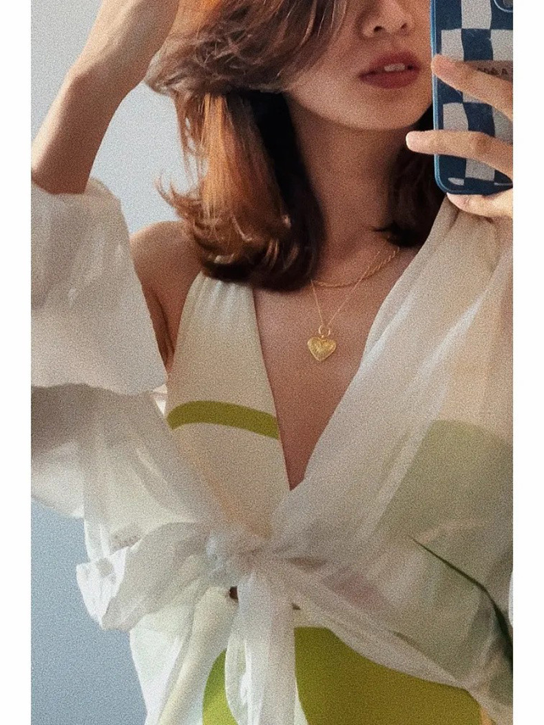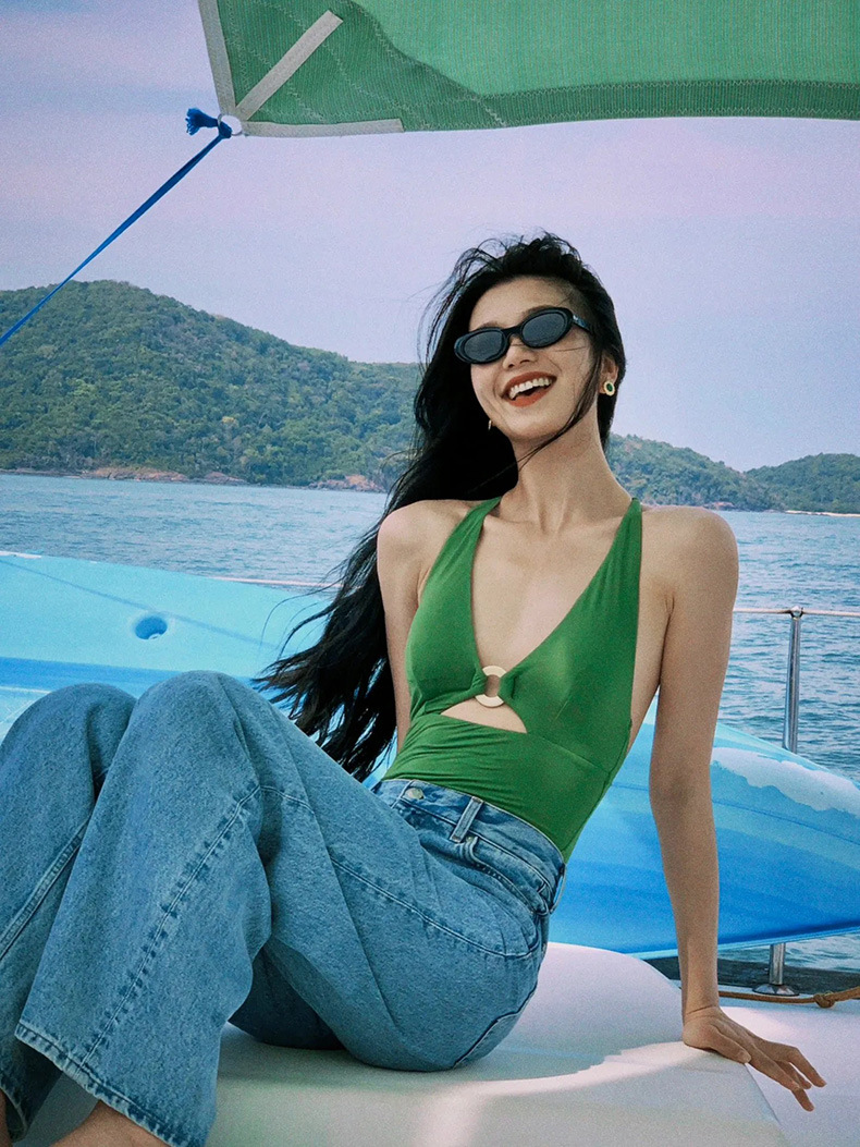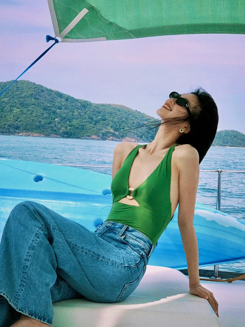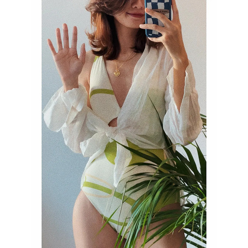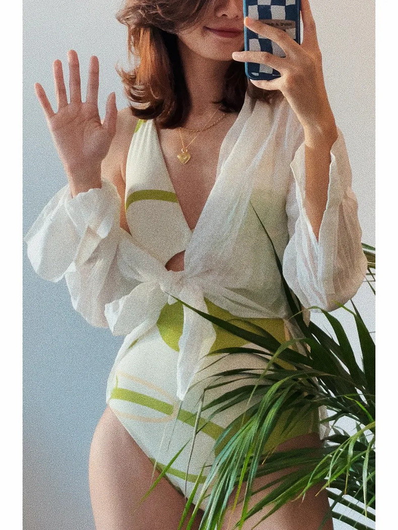 가벼운 럭셔리 심플 레트로 우아한 슬리밍 여신 작은 가슴 소녀 깊은 V 섹시한 원피스 하이 웨이스트 배꼽 덮는 여성용 수영복