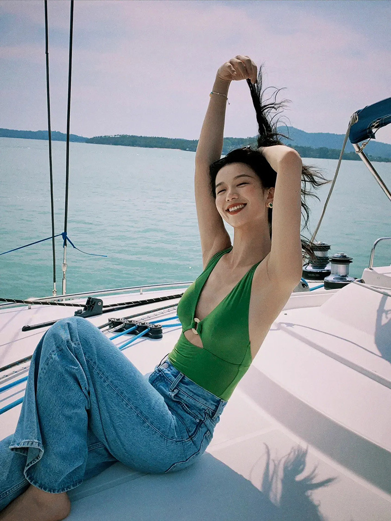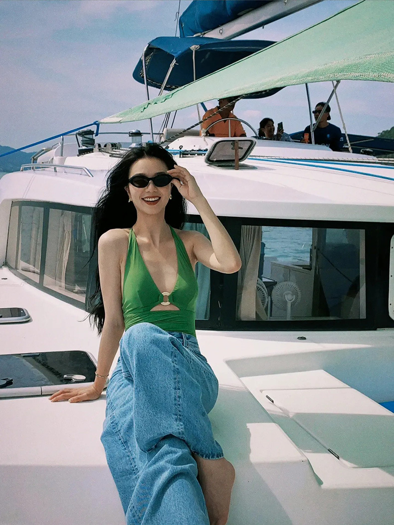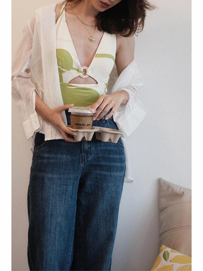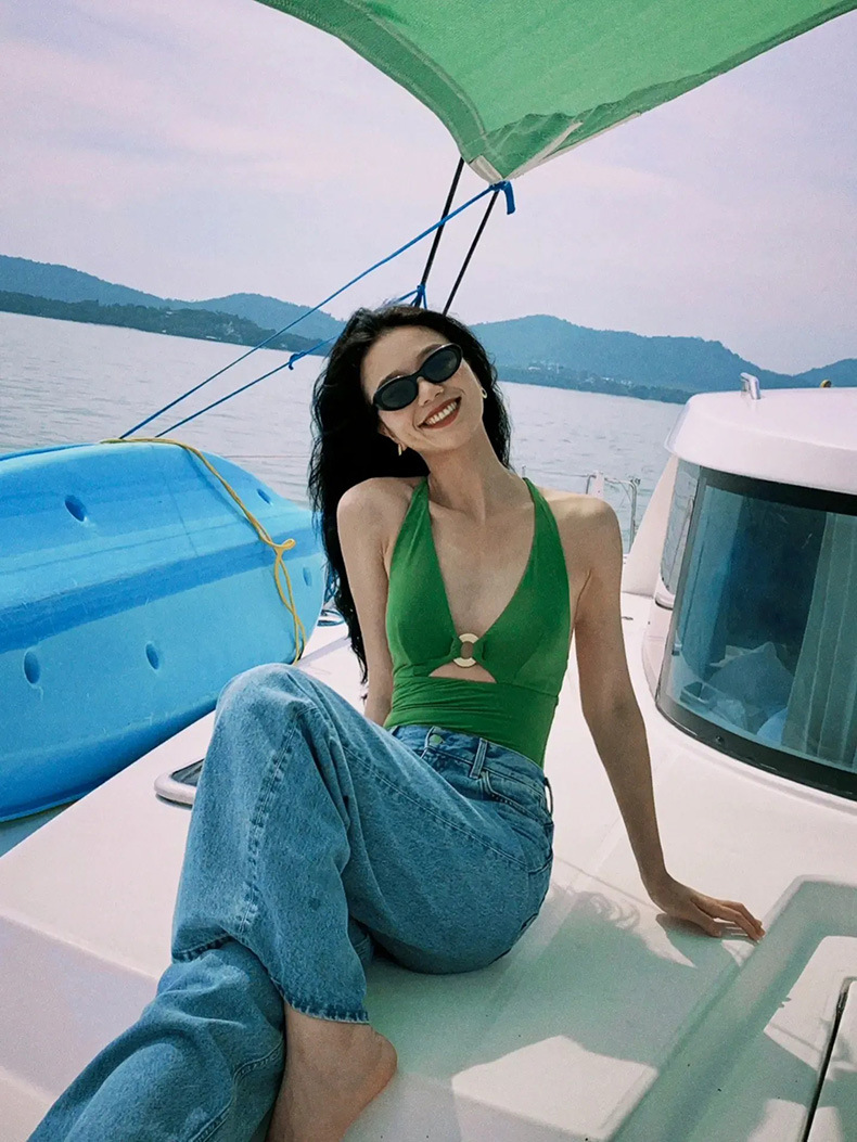 가벼운 럭셔리 심플 레트로 우아한 슬리밍 여신 작은 가슴 소녀 깊은 V 섹시한 원피스 하이 웨이스트 배꼽 덮는 여성용 수영복