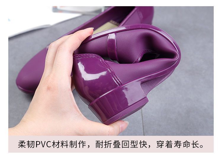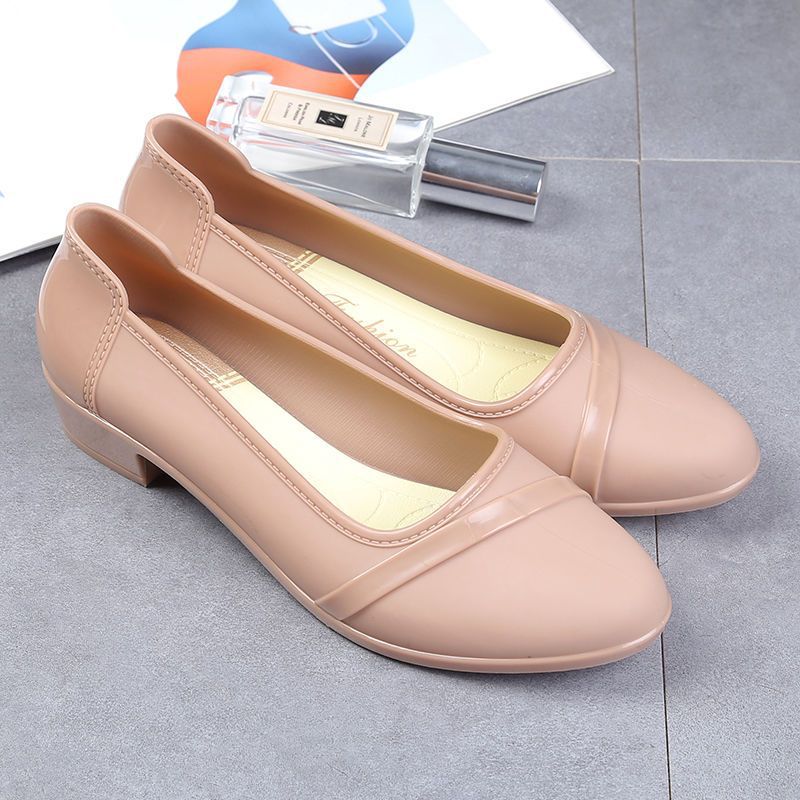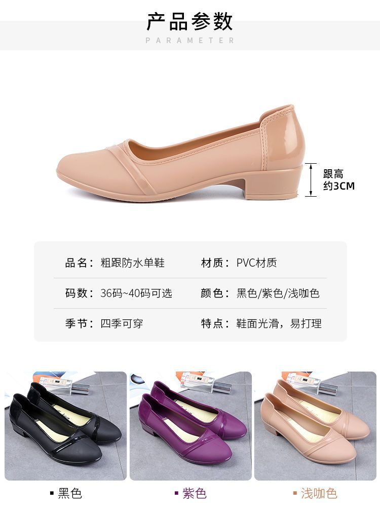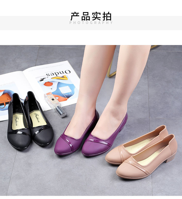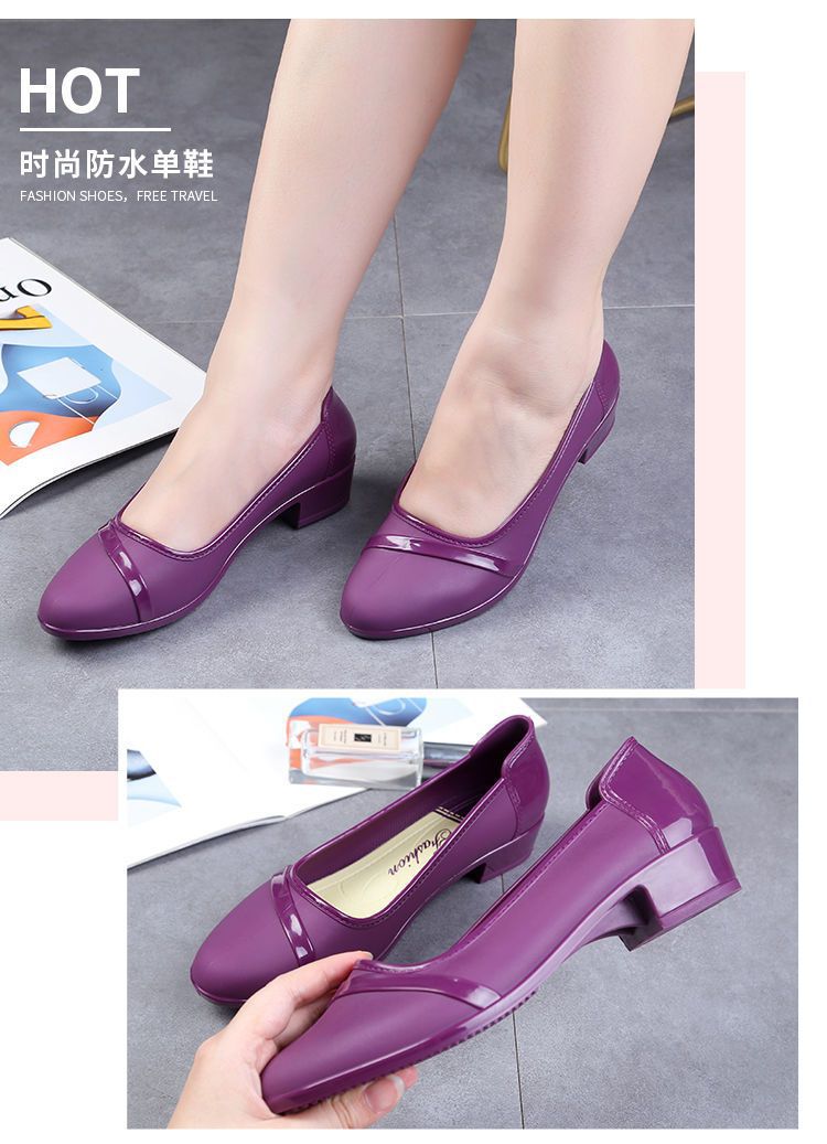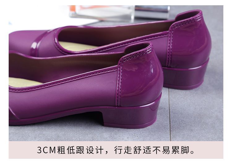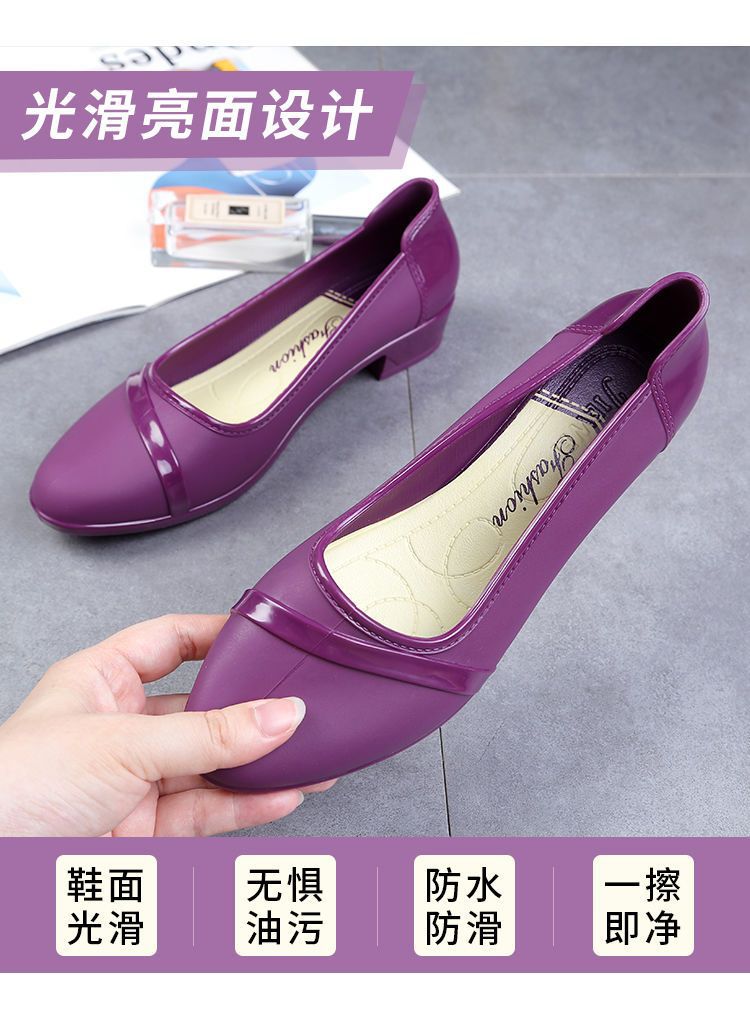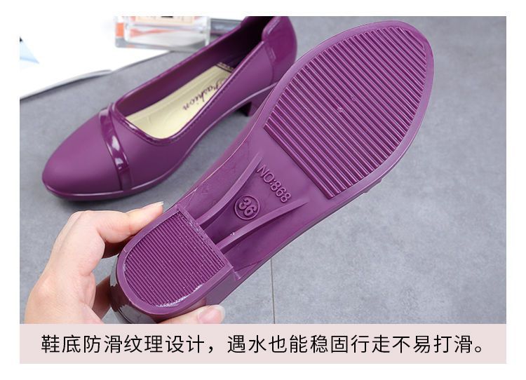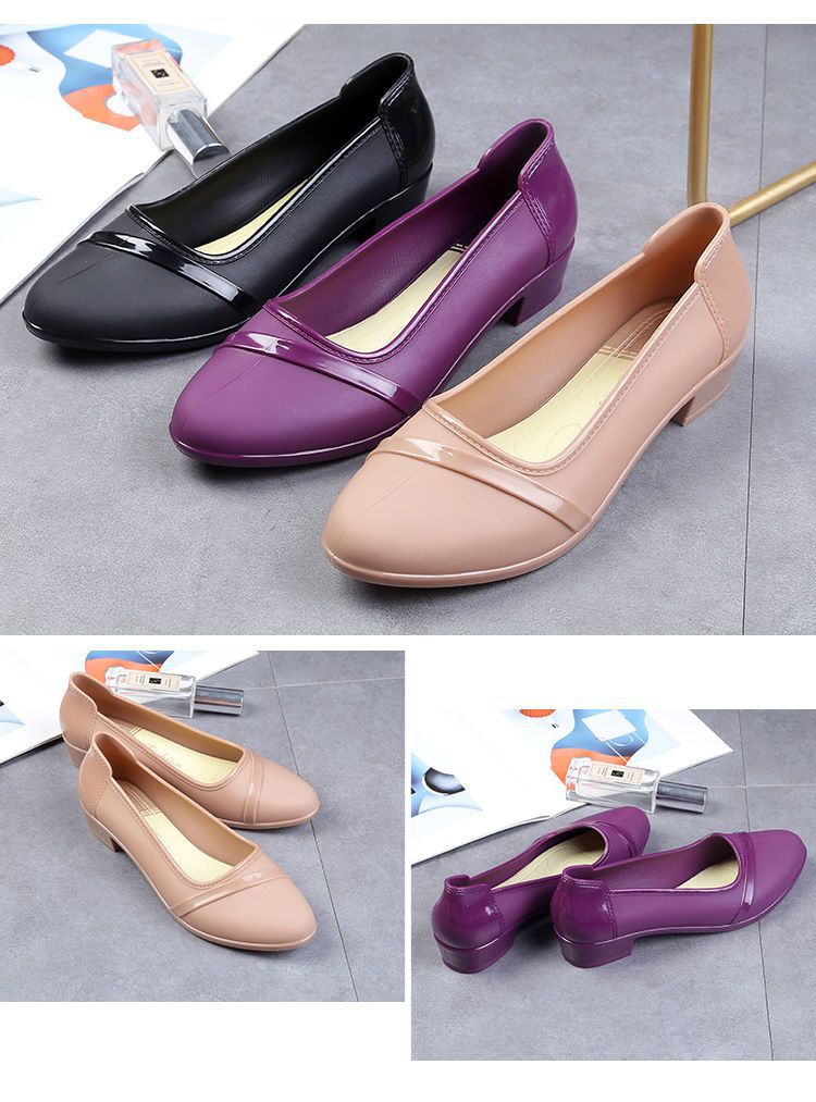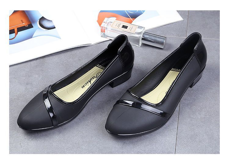 세련된 한국식 성인 로우 탑 방수 신발 짧은 장화 미드힐 미끄럼 방지 장화 여성용 주방 작업 고무 장화스토어 가기