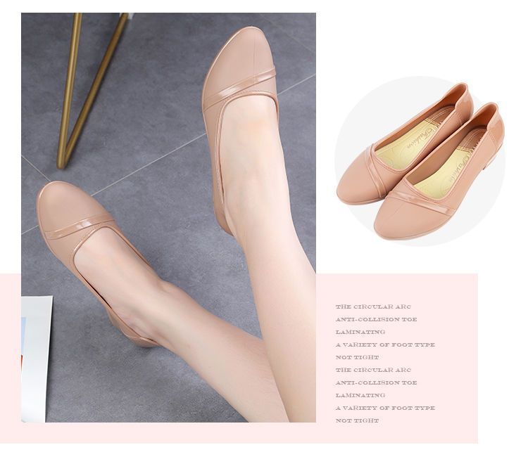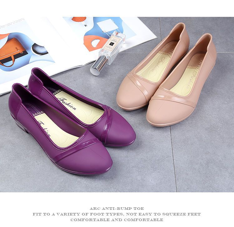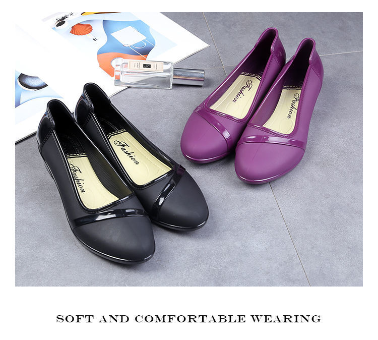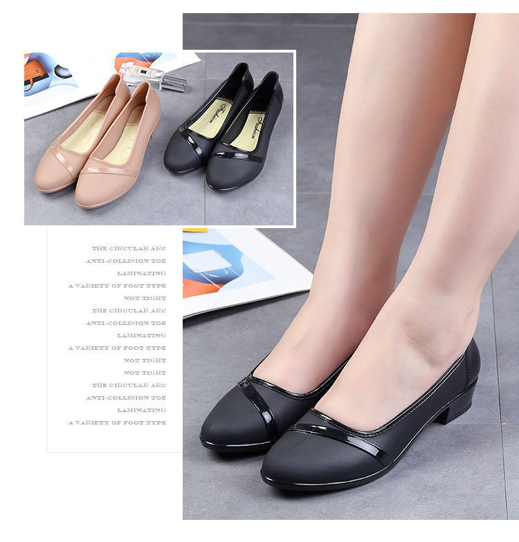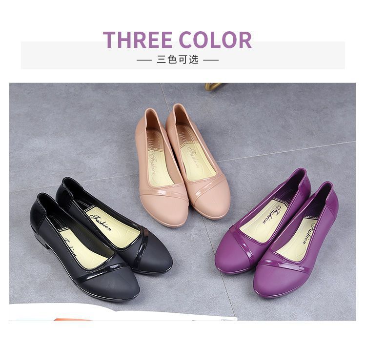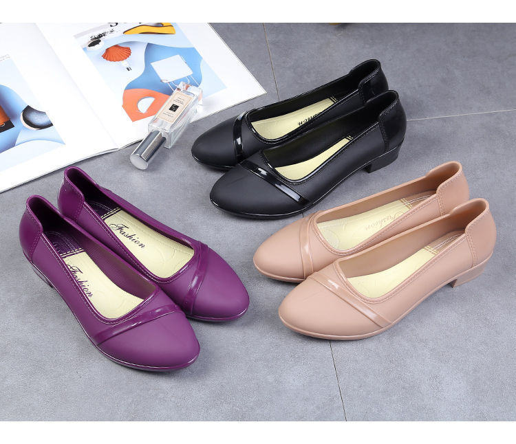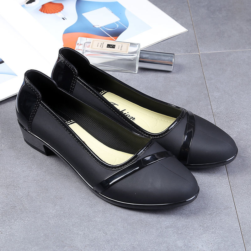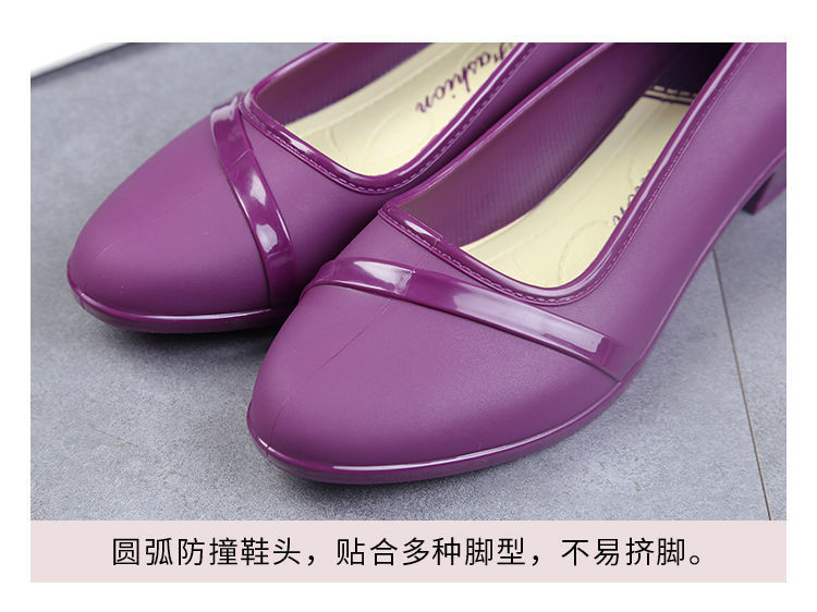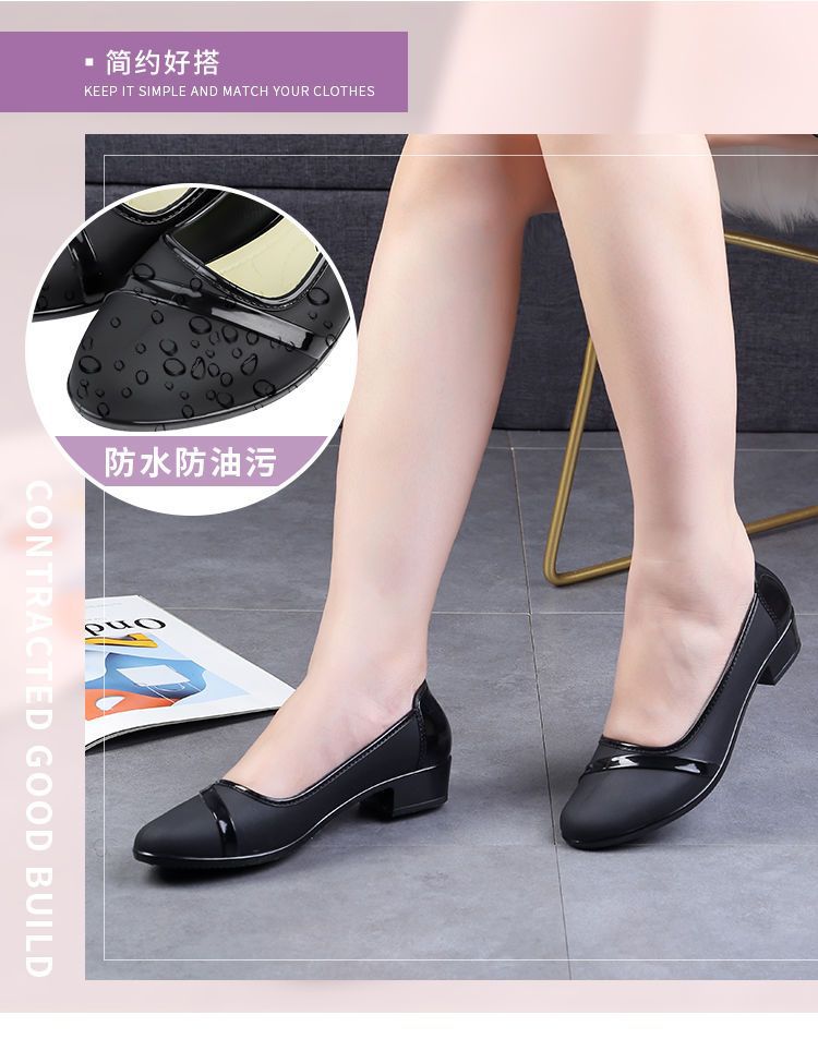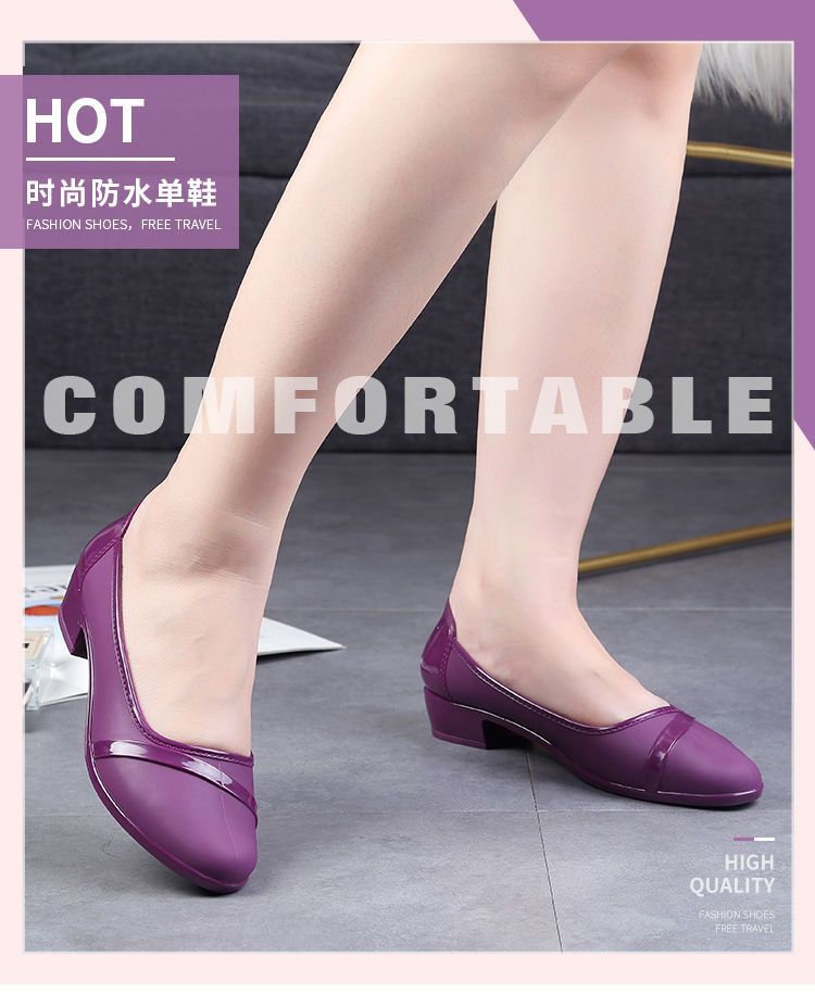 세련된 한국식 성인 로우 탑 방수 신발 짧은 장화 미드힐 미끄럼 방지 장화 여성용 주방 작업 고무 장화스토어 가기