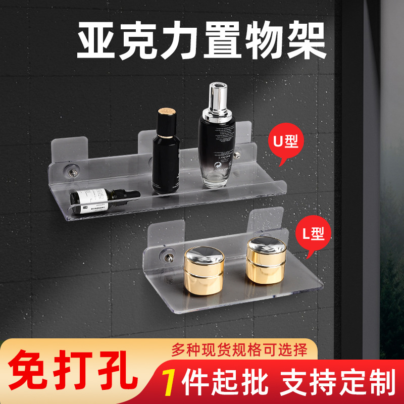 재고 투명 아크릴 스토리지 랙 펀치 프리 화장실 욕실 주방 스토리지 랙 벽걸이 랙스토어 가기