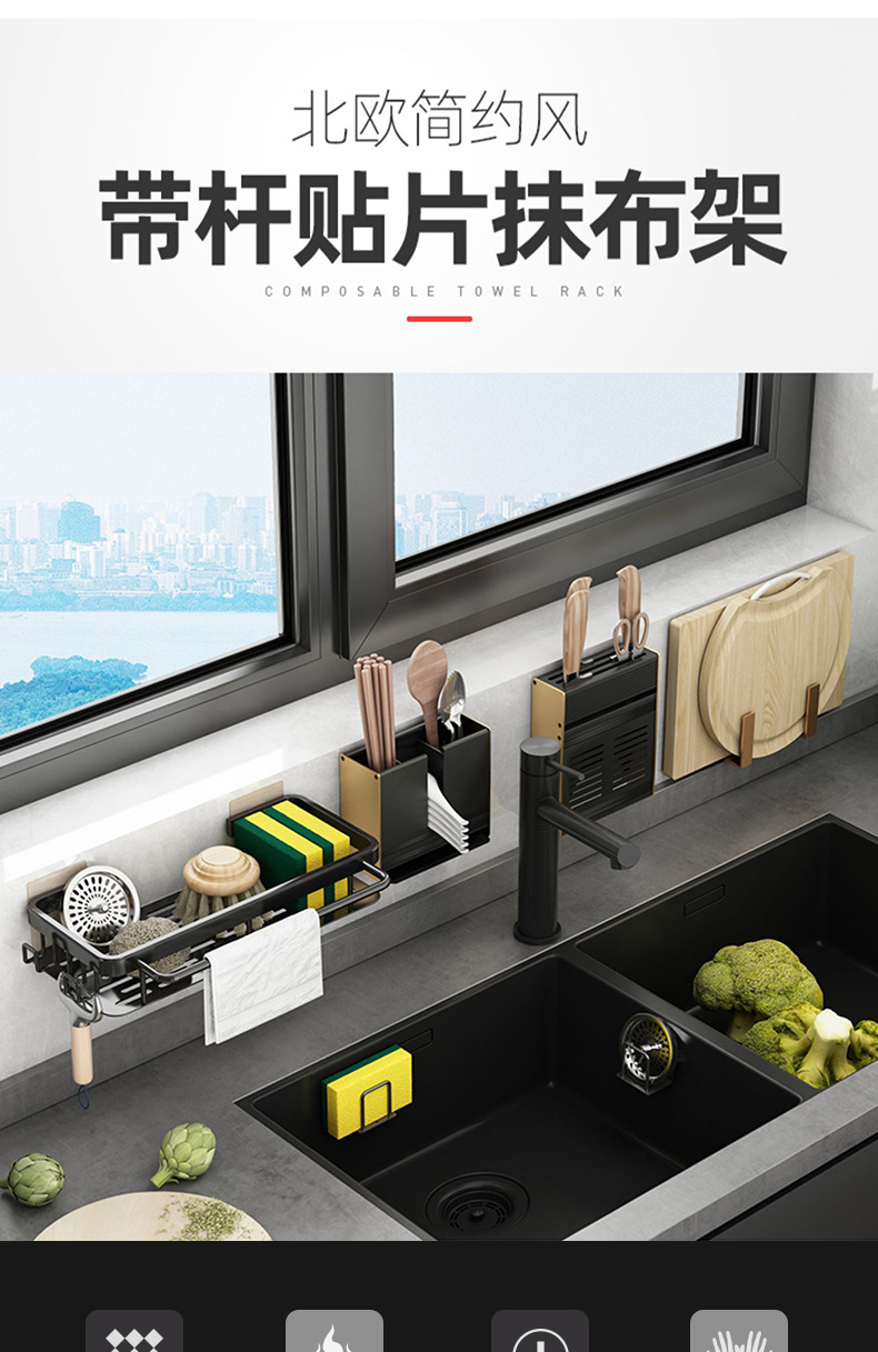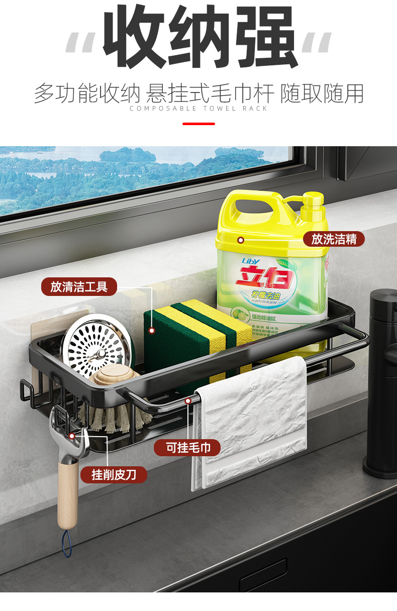닦아 랙 스토리지 랙 주방 스토리지 랙 벽걸이 펀치 무료 가정용 싱크 스폰지 교수형 바구니 싱크 배수 유물