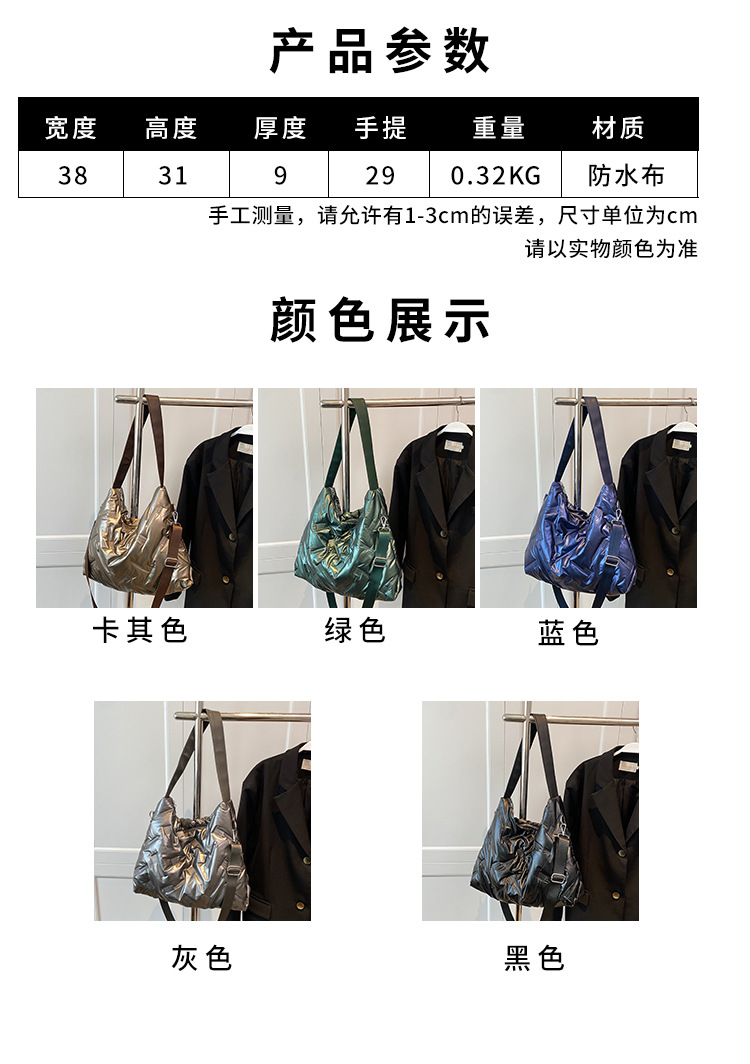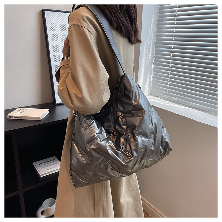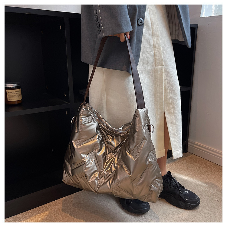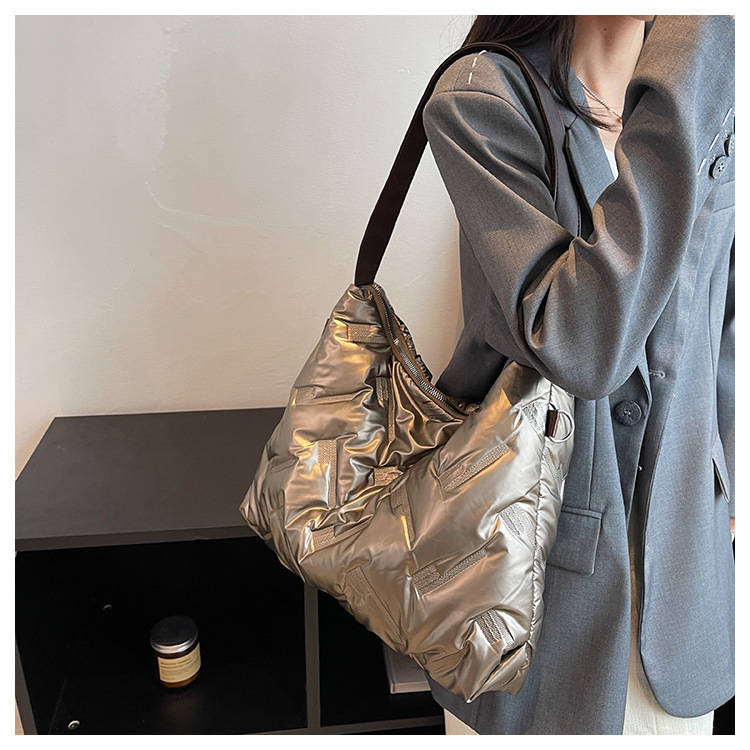 2023 봄 여름 새로운 코튼 패딩 재킷 숄더백 한국식 휴대용 토트백 대용량 여성용 질감 크로스바디 스페이스 백