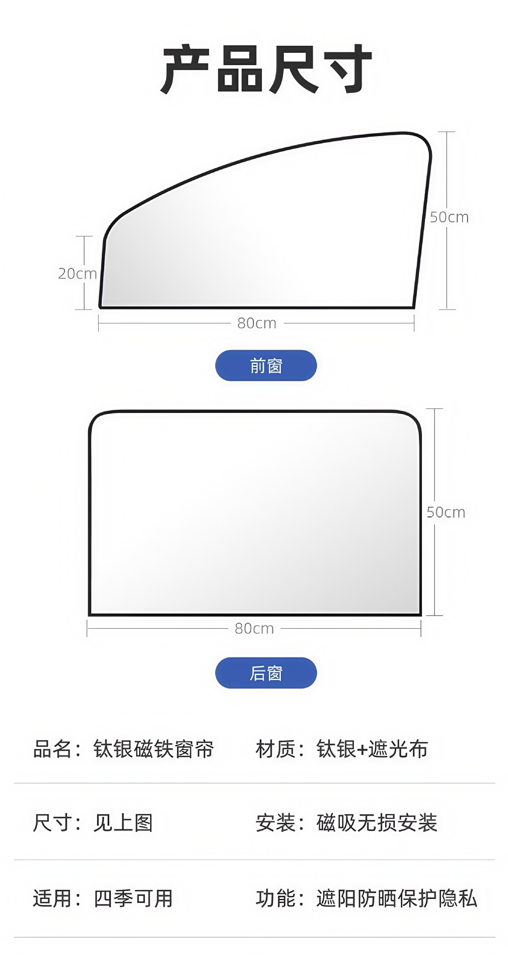 品名:钛银布遮光磁性汽车窗帘(1片装)