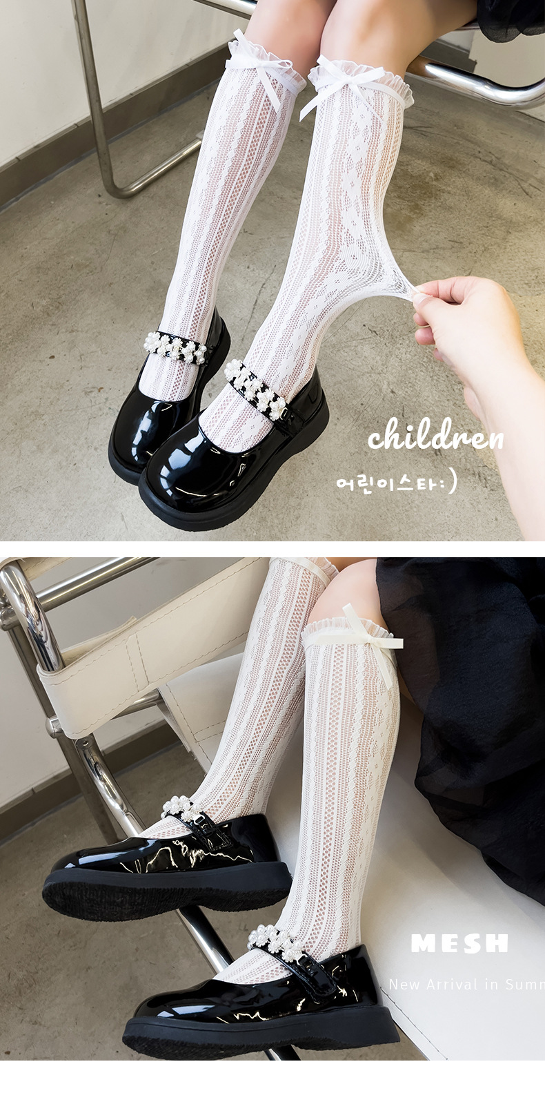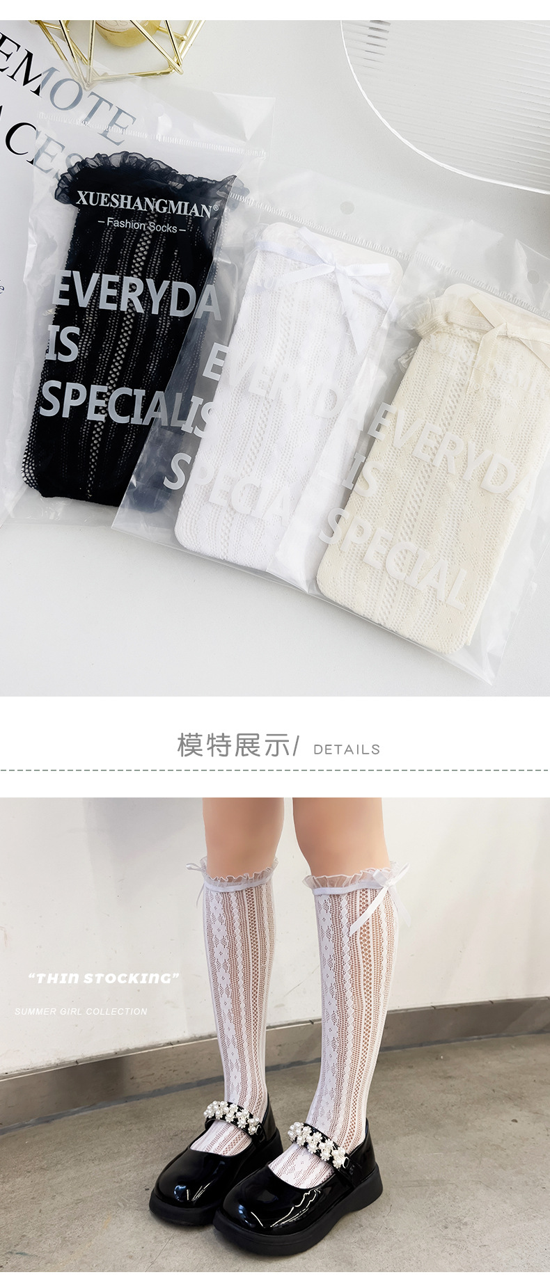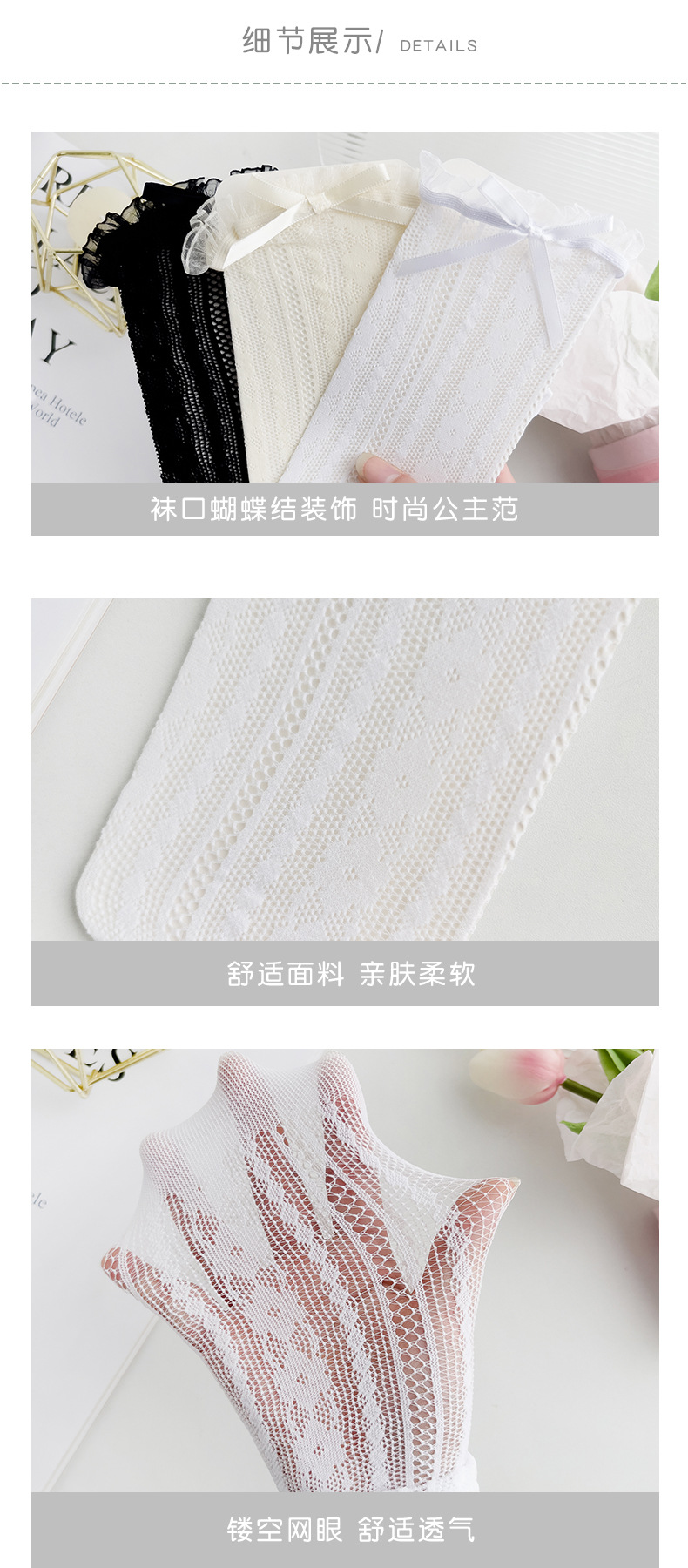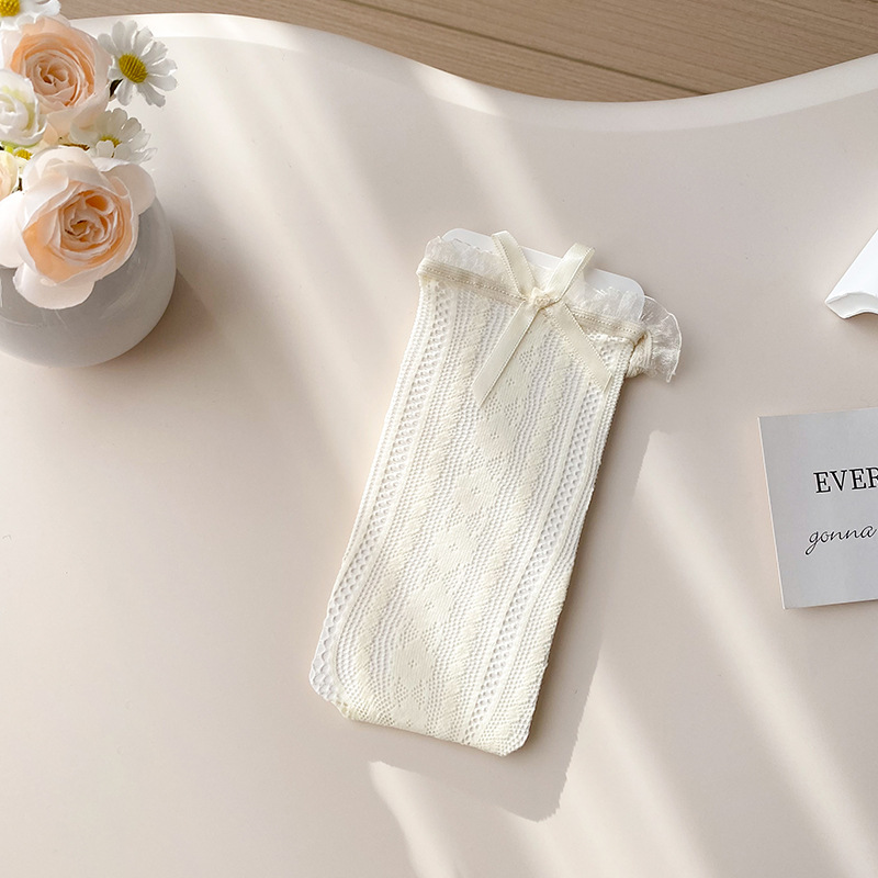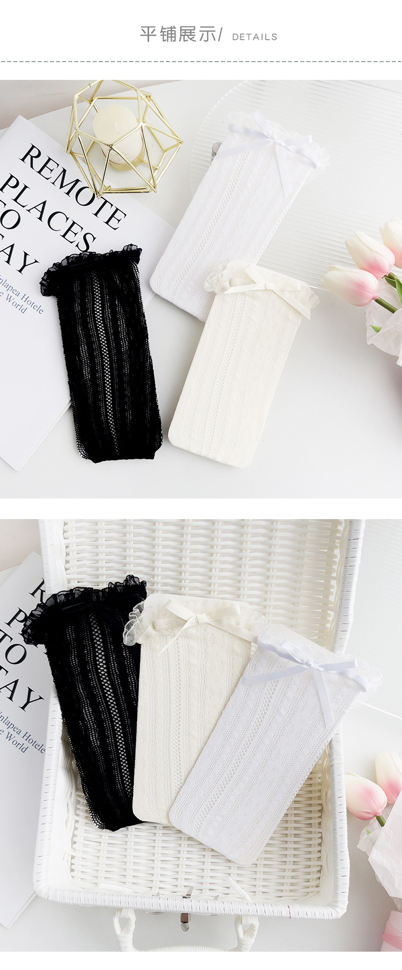 어린이용 여아 양말 봄 여름용 리본 레이스 롱 양말 로리타 소녀 공주 종아리 양말