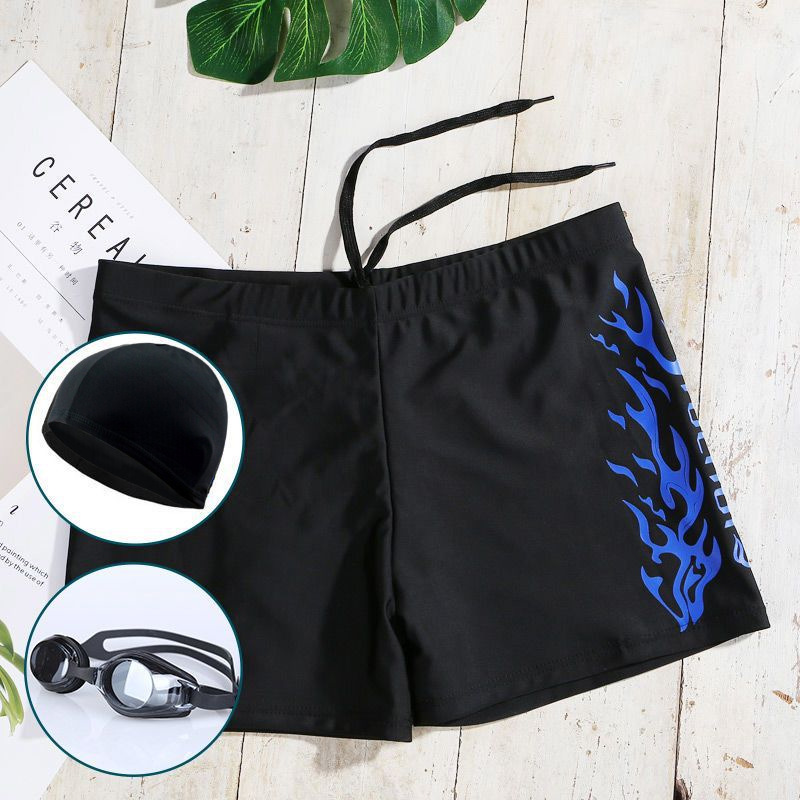 수영 트렁크 남성 불꽃 수영 트렁크 성인 플러스 사이즈 수영 트렁크 수영 고글 수영 모자 수영 세트 빠른 건조 복서 남자 수영 트렁크