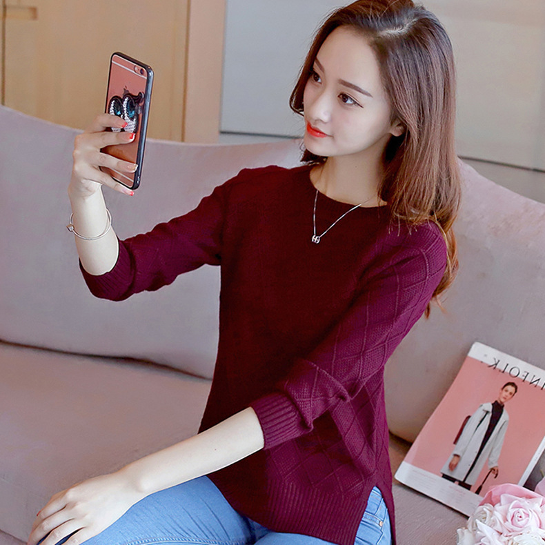 가을과 겨울 새로운 솔리드 컬러 라운드 넥 터틀넥 스웨터 여성용 베이스 셔츠 한국 스타일 느슨한 신선한 스타일 여성용 긴 소매 스웨터