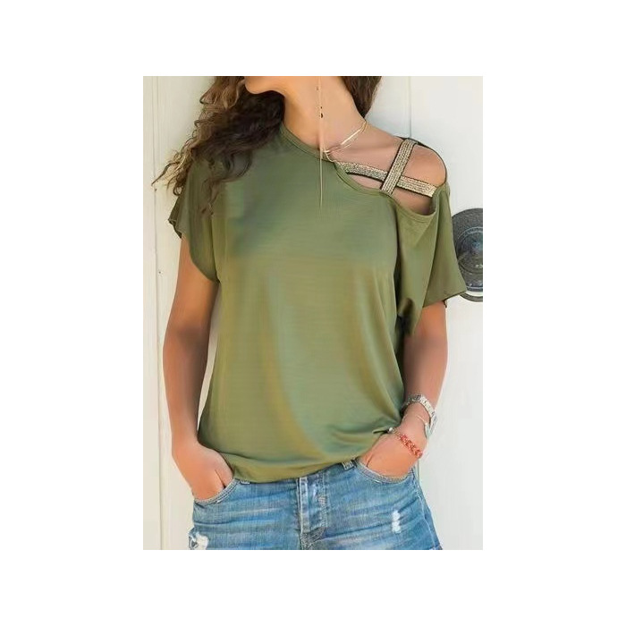 여름 새로운 패션 AliExpress 아마존 유럽과 미국 캐주얼 크로스 숄더 불규칙한 반팔 티셔츠 여성 트렌디스토어 가기