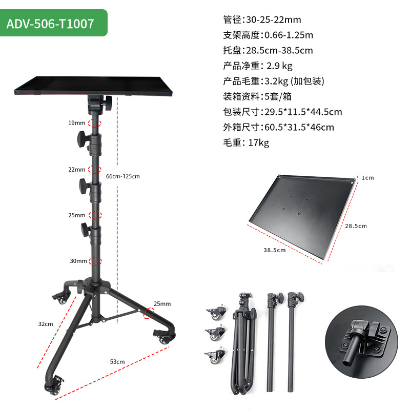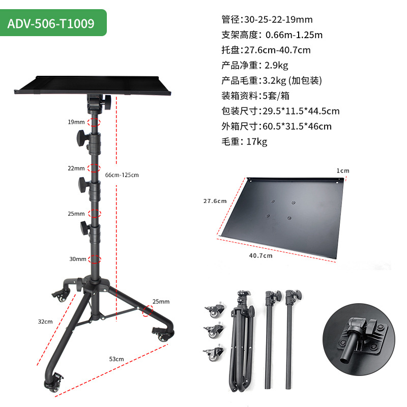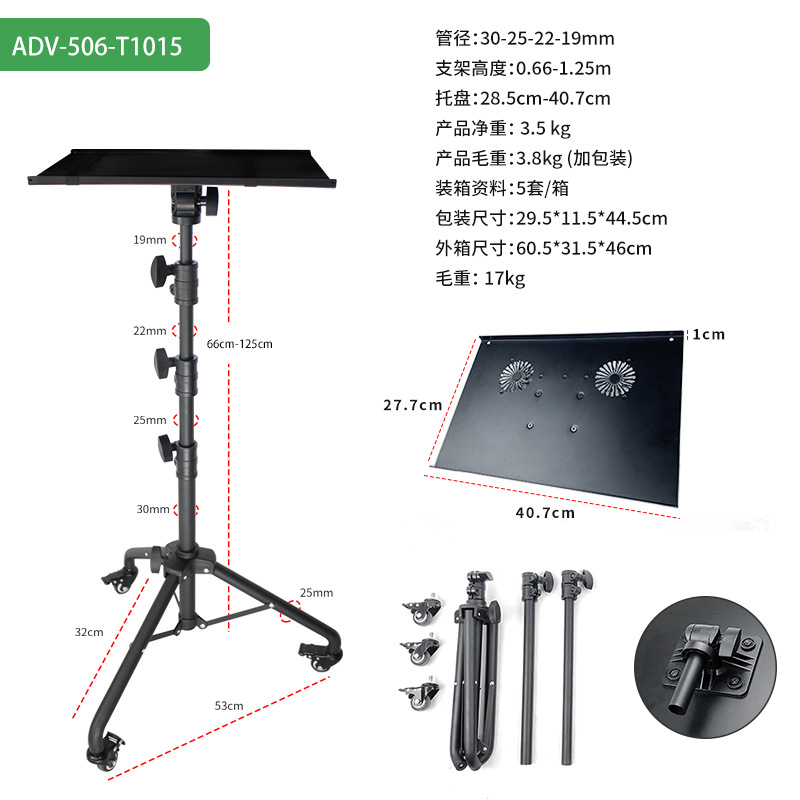 노트북 스탠드 바닥 이동식 바퀴가 달린 삼각대 모바일 범용 풀리 프로젝터 스탠드