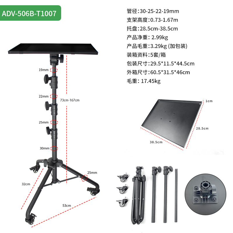 노트북 스탠드 바닥 이동식 바퀴가 달린 삼각대 모바일 범용 풀리 프로젝터 스탠드스토어 가기