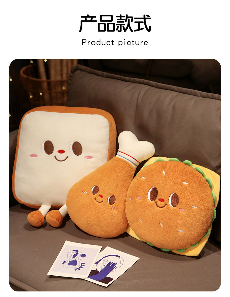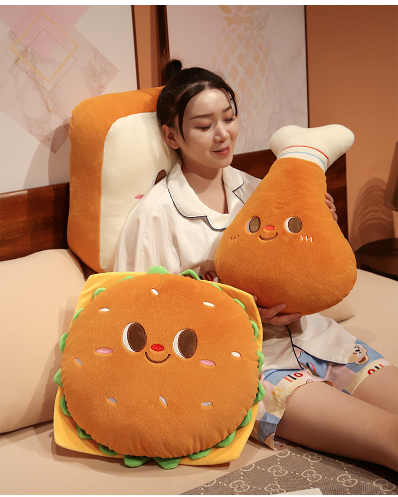 시뮬레이션 크리 에이 티브 함부르크 닭 다리 토스트 빵 베개 봉제 장난감 인형 소녀 수면 쿠션 휴일 선물