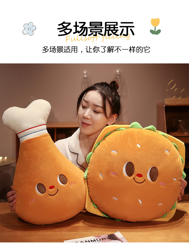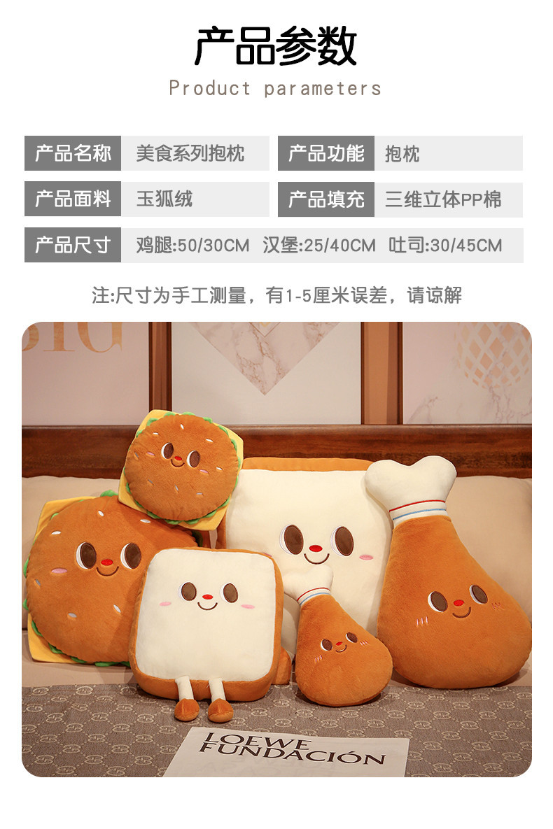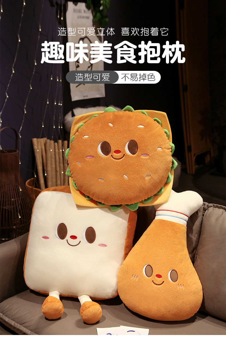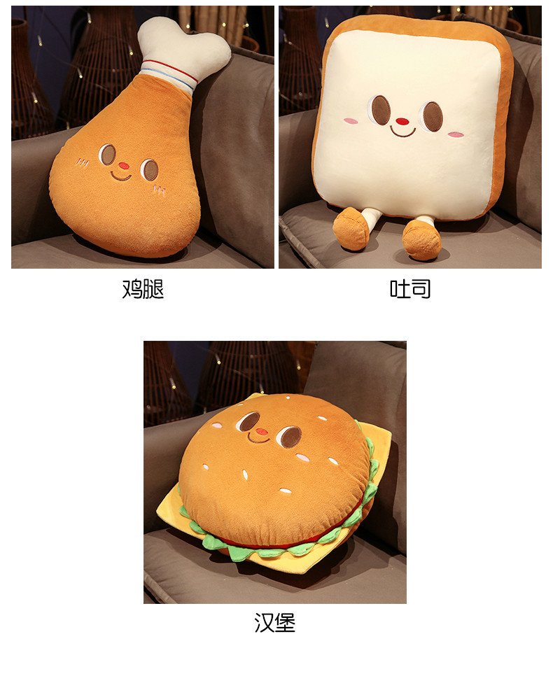 시뮬레이션 크리 에이 티브 함부르크 닭 다리 토스트 빵 베개 봉제 장난감 인형 소녀 수면 쿠션 휴일 선물스토어 가기