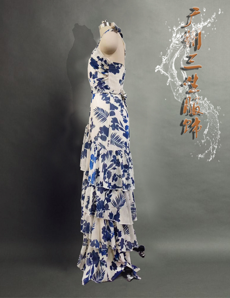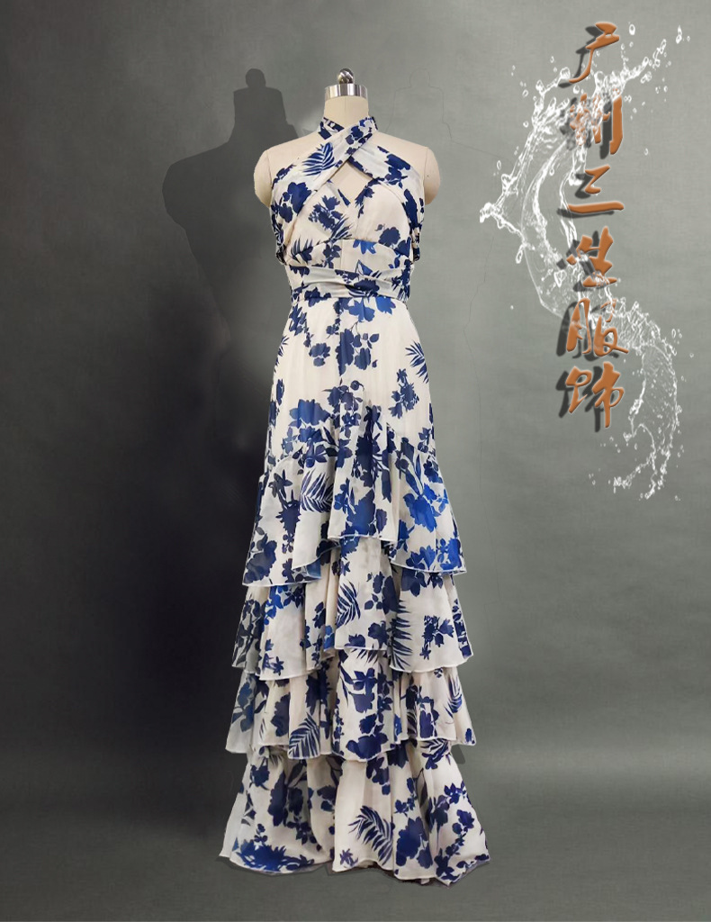 2025년 여름 신상 유럽풍 보헤미안 휴양지 스타일 레이스업 로리타 플레어 스커트 프린트 원피스