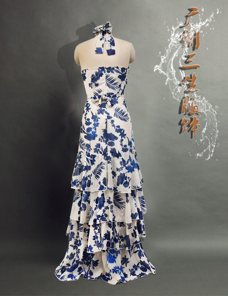 2025년 여름 신상 유럽풍 보헤미안 휴양지 스타일 레이스업 로리타 플레어 스커트 프린트 원피스스토어 가기