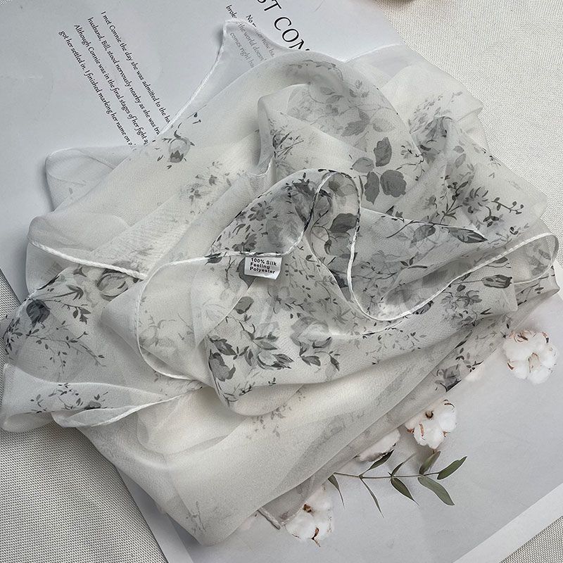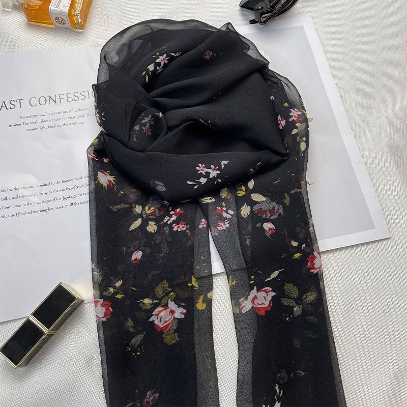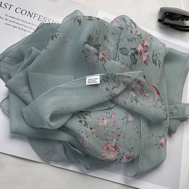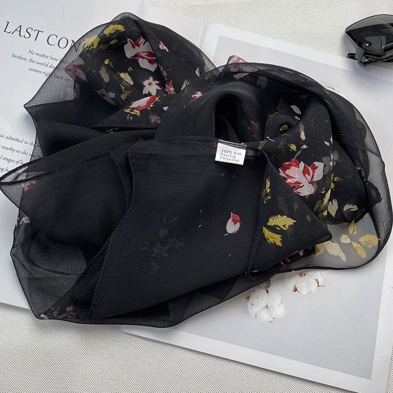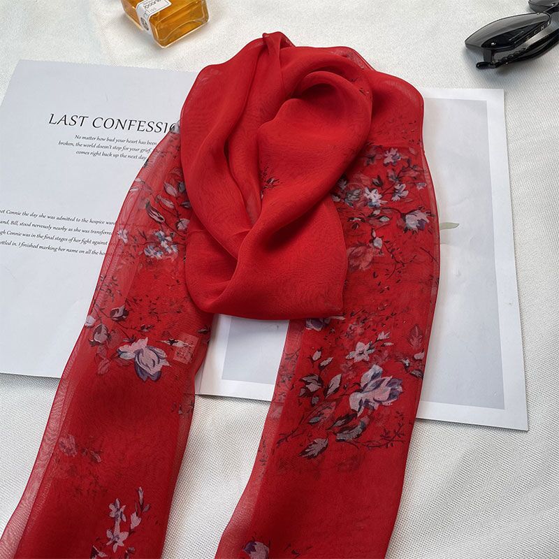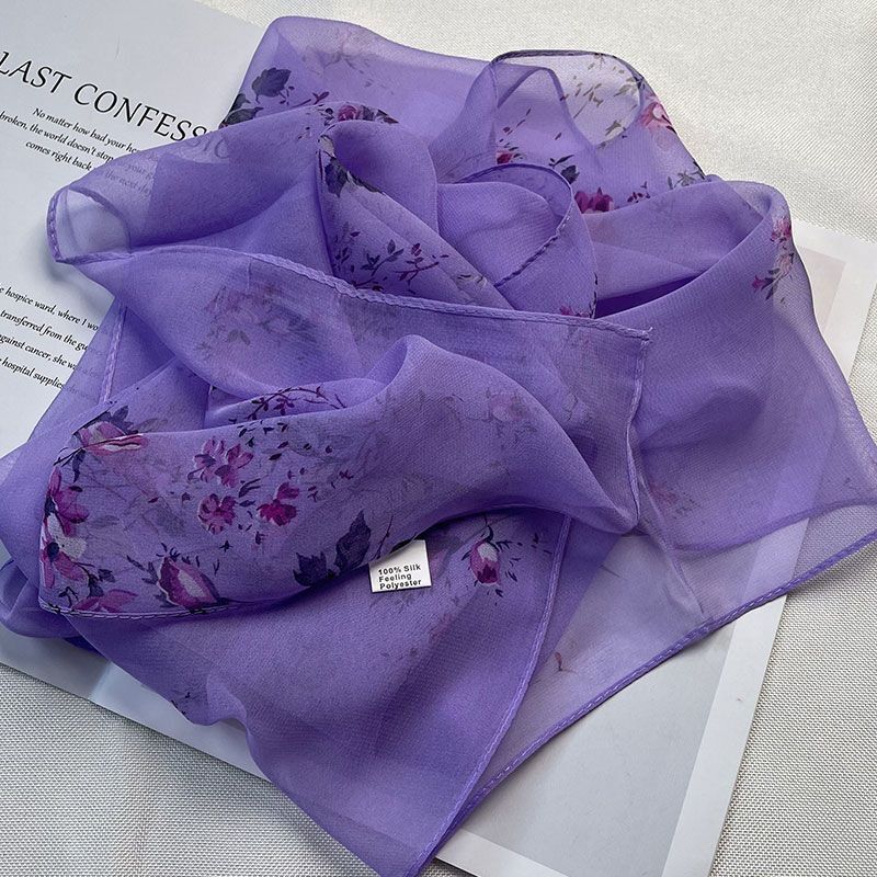 실크 스카프 여성용 여름 얇은 자외선 차단제 롱 조젯 스카프 어머니 선물 봄과 가을 만능 숄 비치 타올스토어 가기