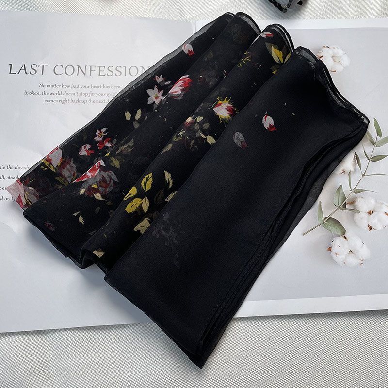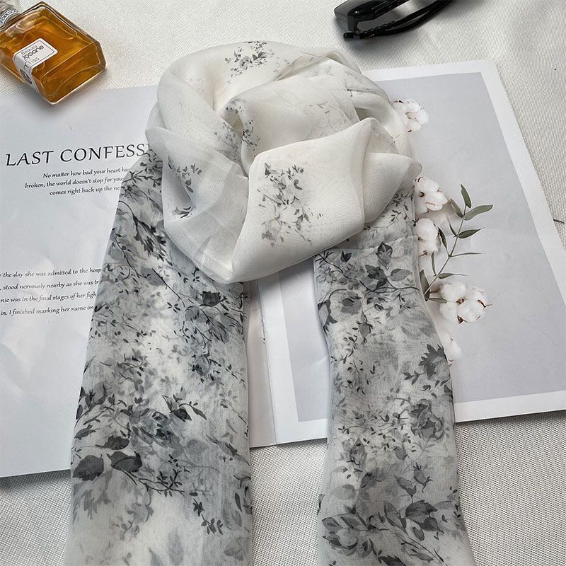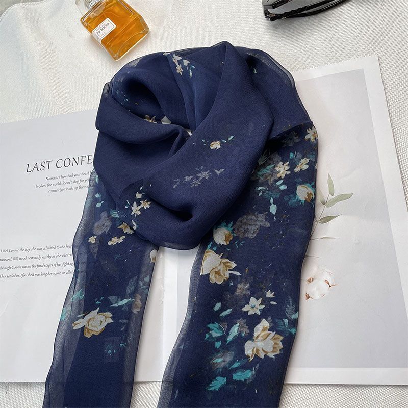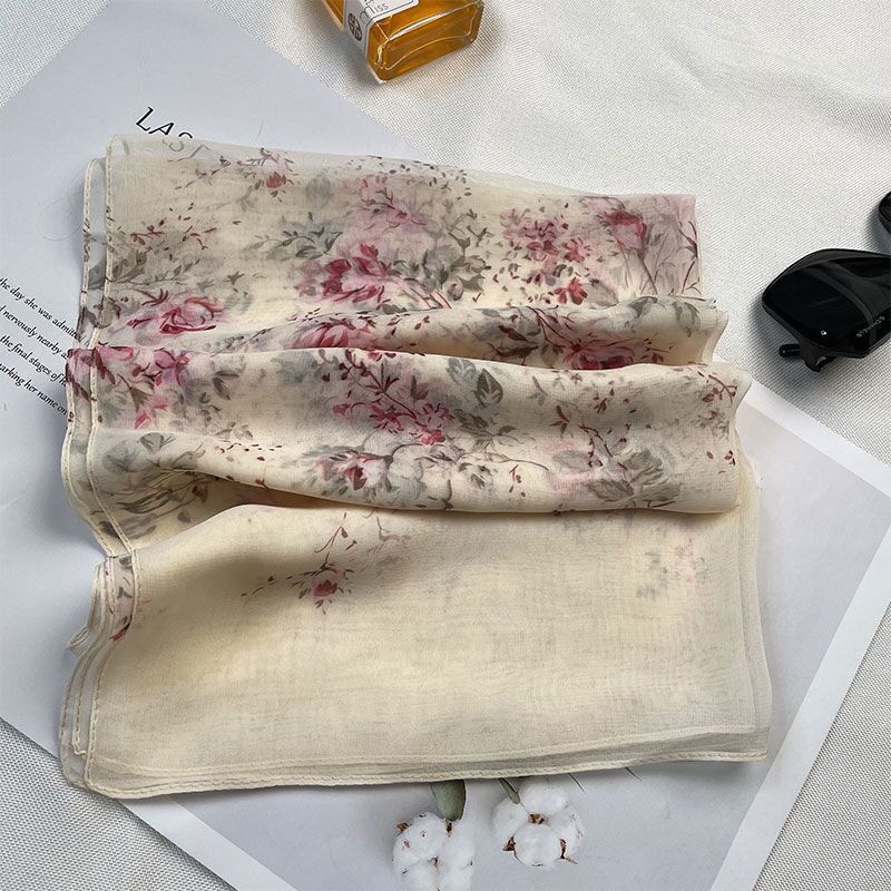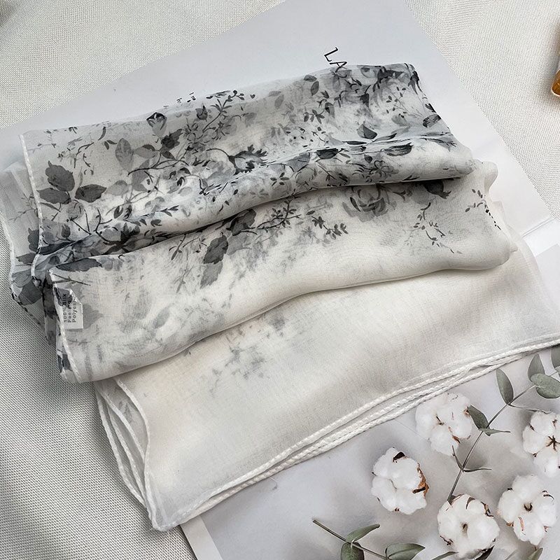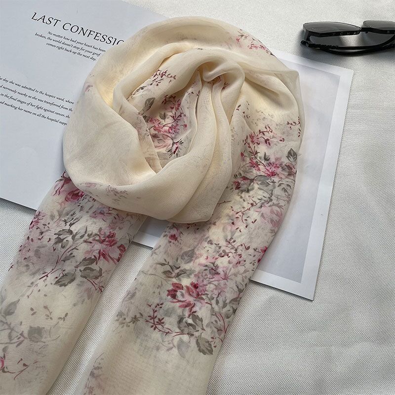 실크 스카프 여성용 여름 얇은 자외선 차단제 롱 조젯 스카프 어머니 선물 봄과 가을 만능 숄 비치 타올스토어 가기