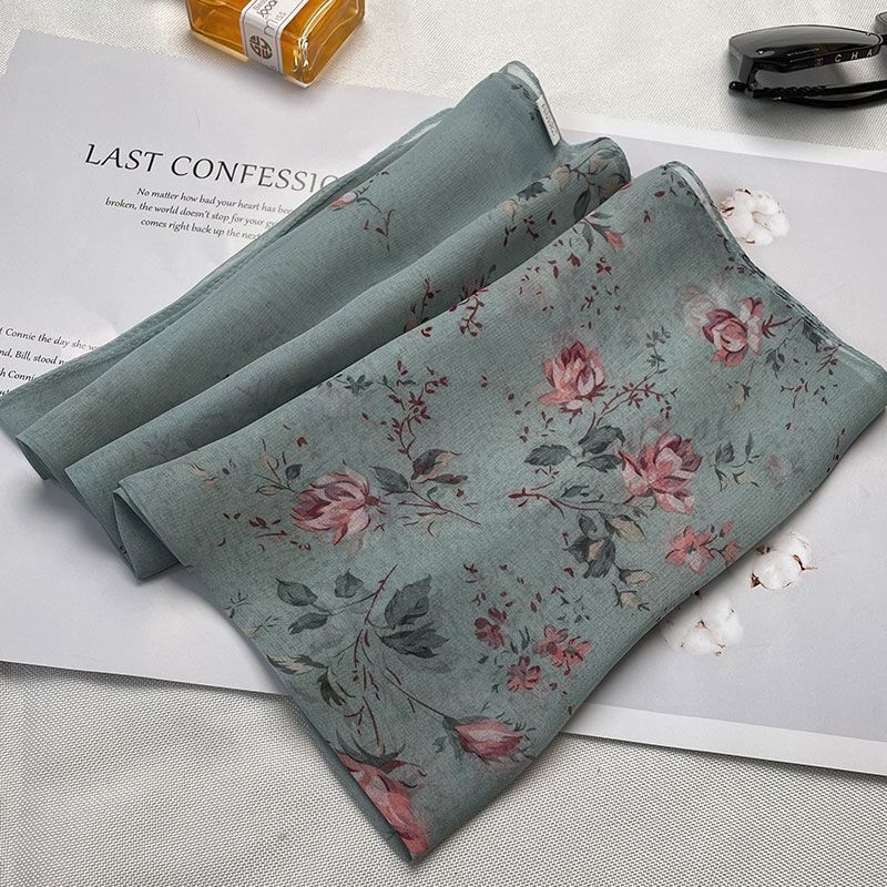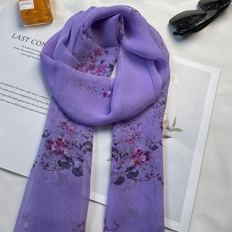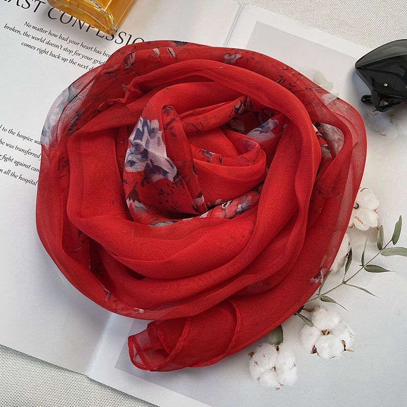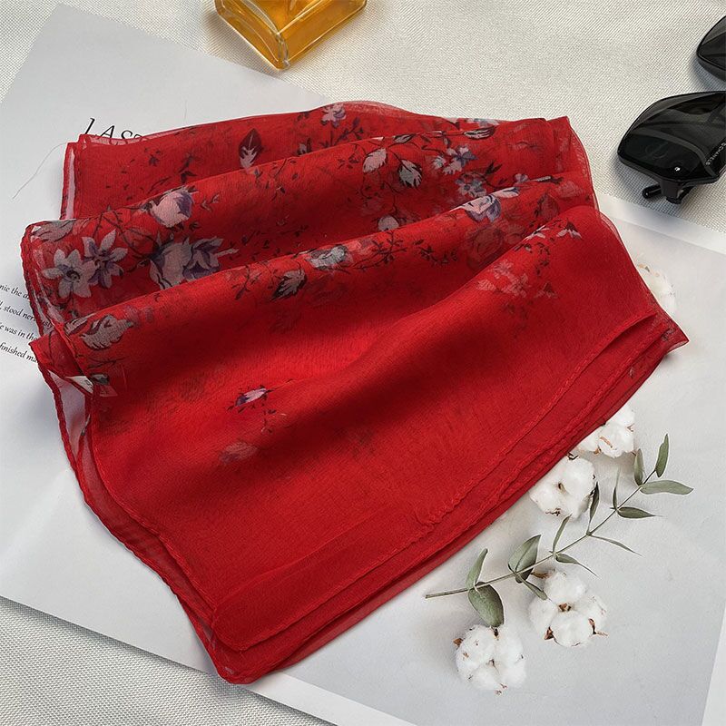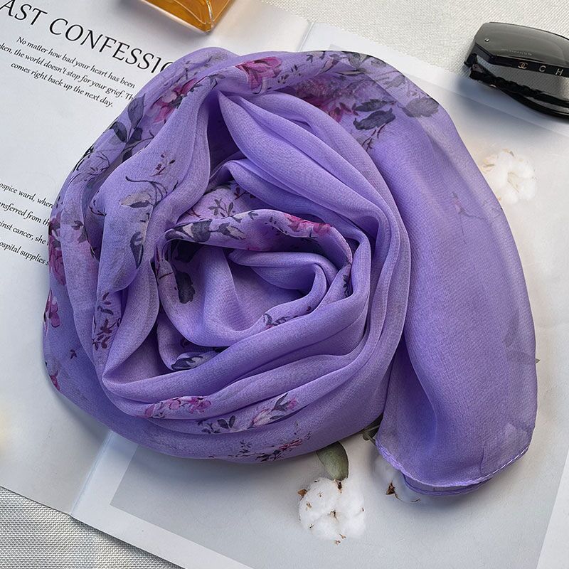 실크 스카프 여성용 여름 얇은 자외선 차단제 롱 조젯 스카프 어머니 선물 봄과 가을 만능 숄 비치 타올