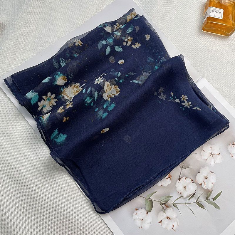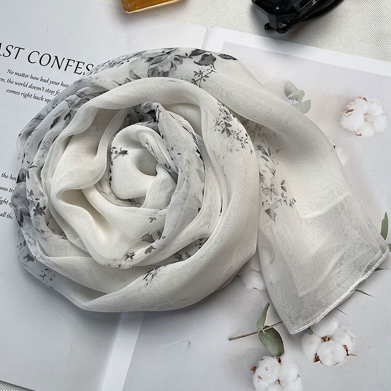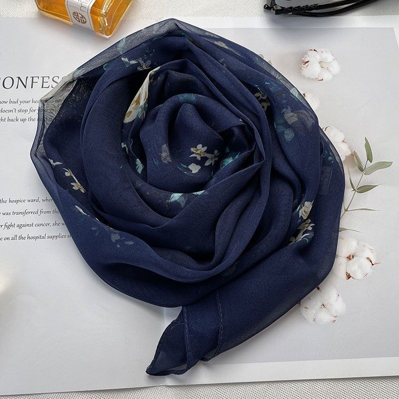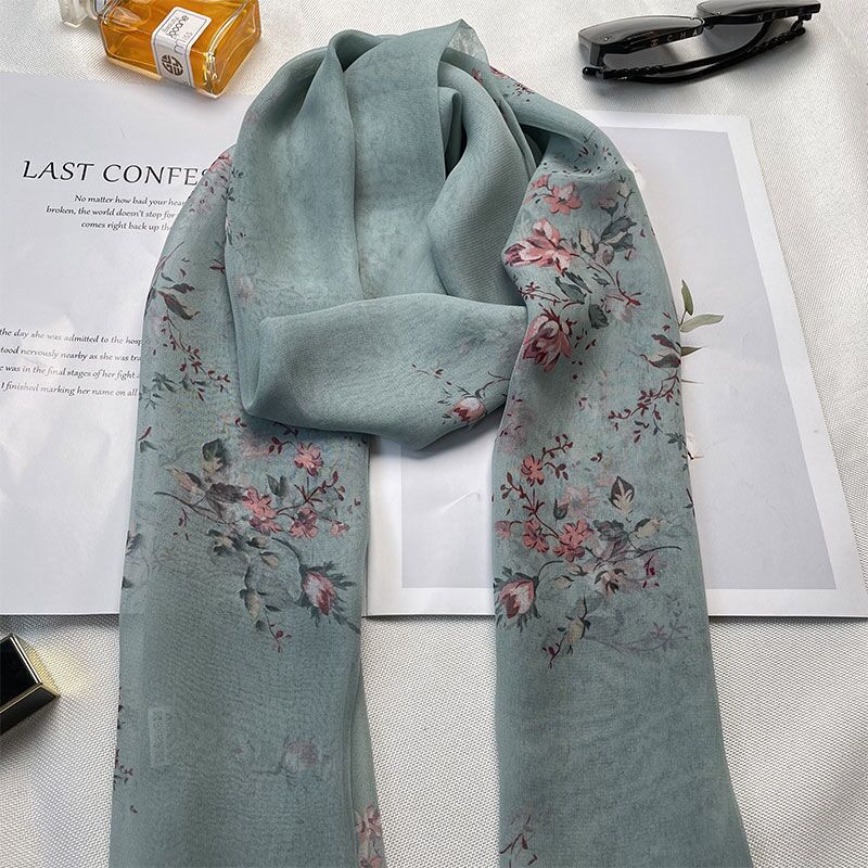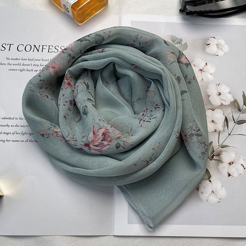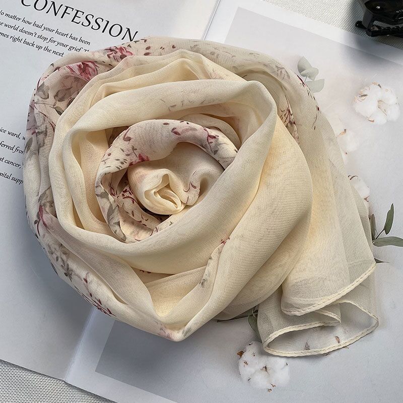 실크 스카프 여성용 여름 얇은 자외선 차단제 롱 조젯 스카프 어머니 선물 봄과 가을 만능 숄 비치 타올