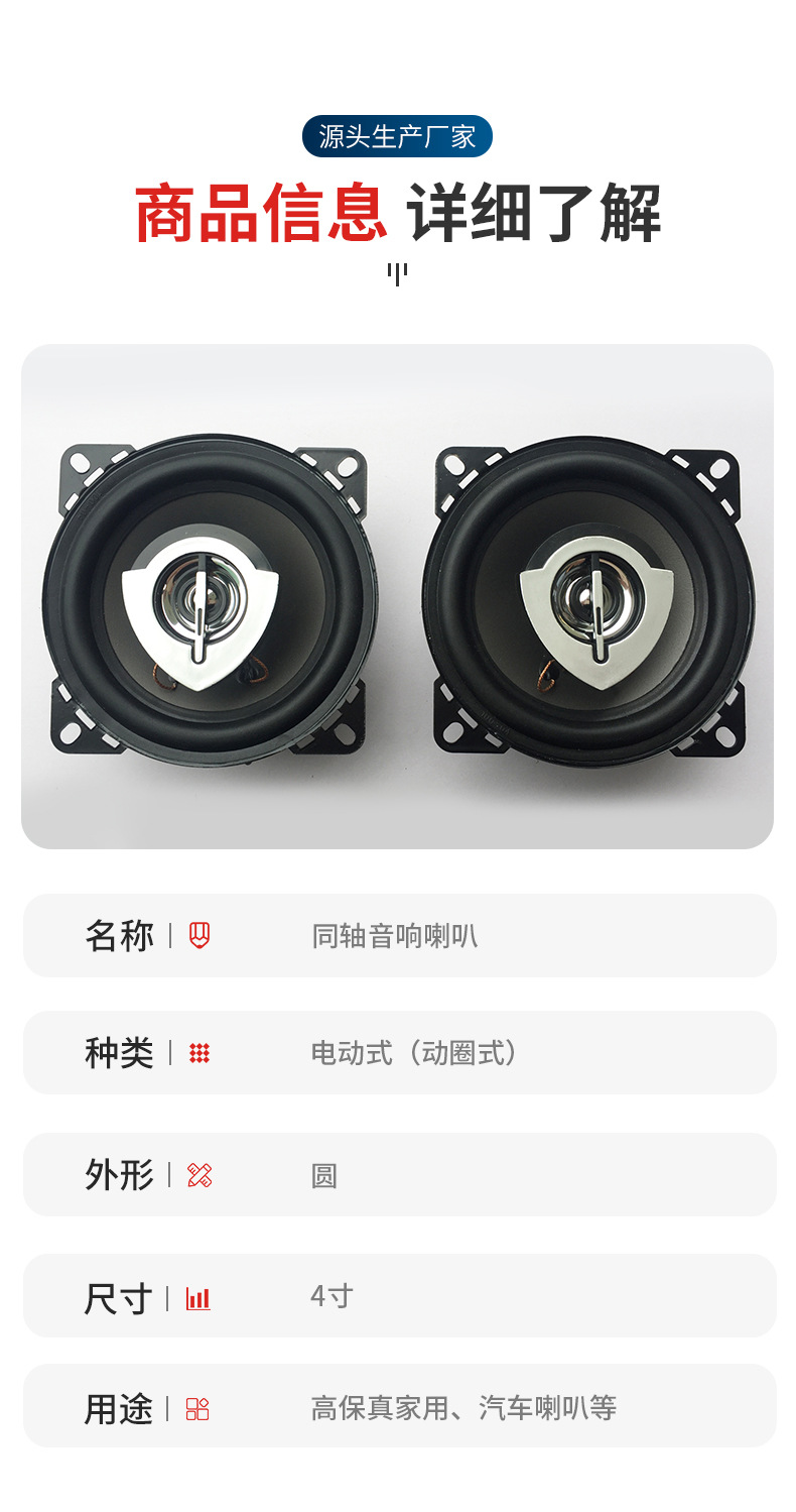새로운 자동차 스피커 4 인치 동축 스피커 슈퍼베이스 스피커 수정 자동차 스피커스토어 가기