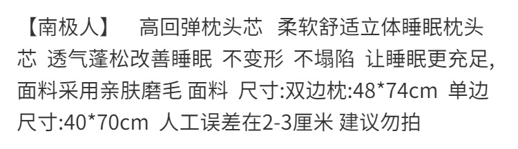 [난지렌] 빨 베개 쌍 배달 베갯잇 호텔 베개 코어 목 보호 가정용 성인 베개 코어스토어 가기