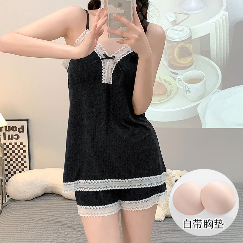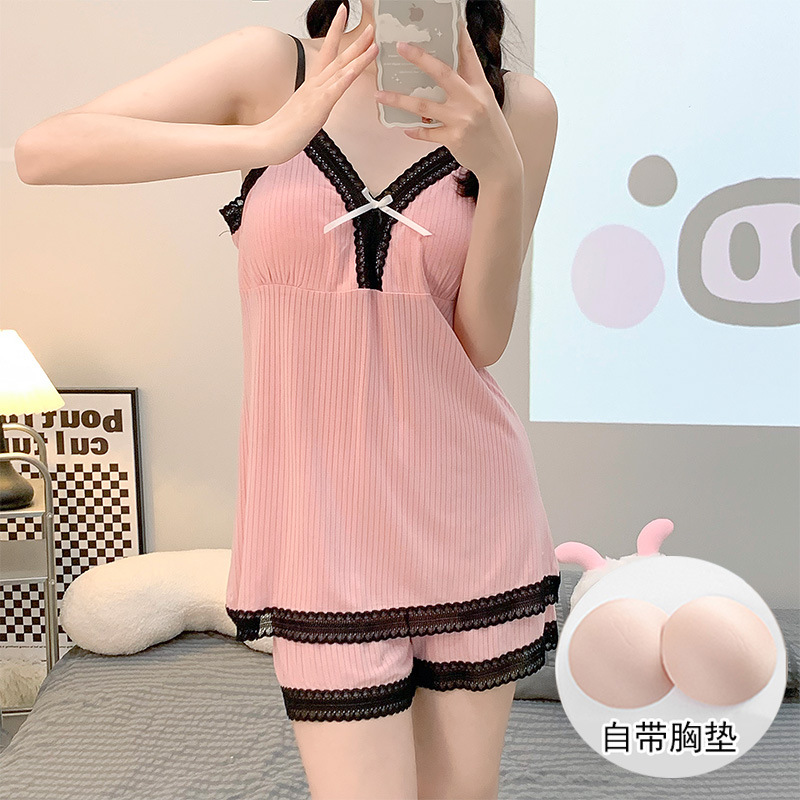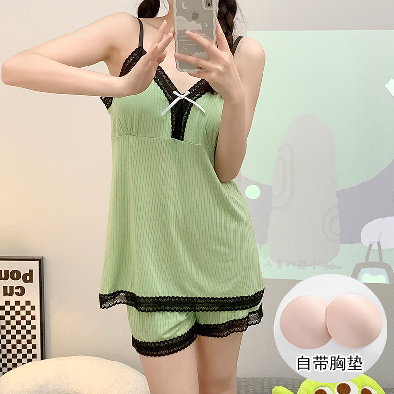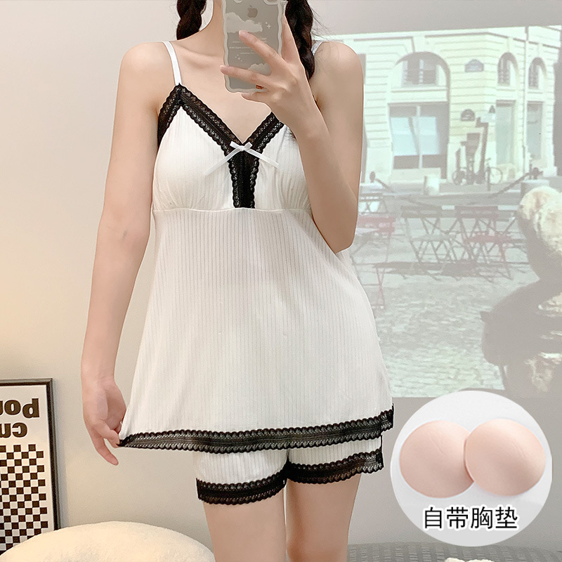 섹시한 잠옷 여성용 여름 회색 여름 모달 면 여성용 슬링 반바지 가슴 패드 홈웨어 얇은스토어 가기