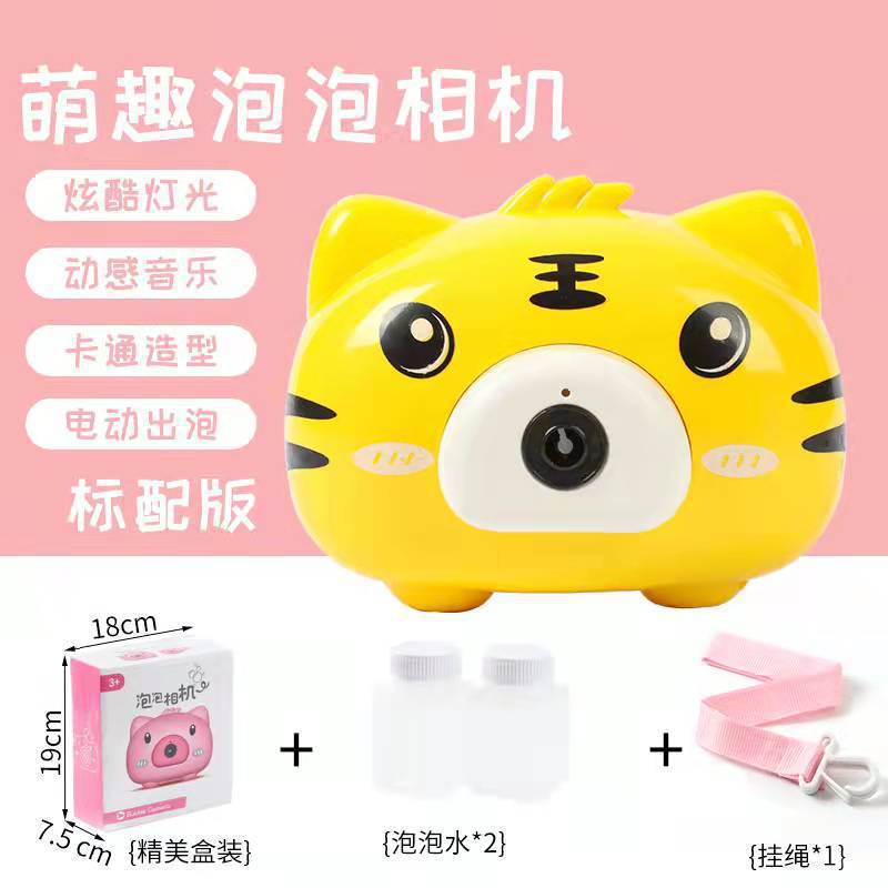 • 배터리가 포함된 작은 상자에 노란색 호랑이 버블 머신