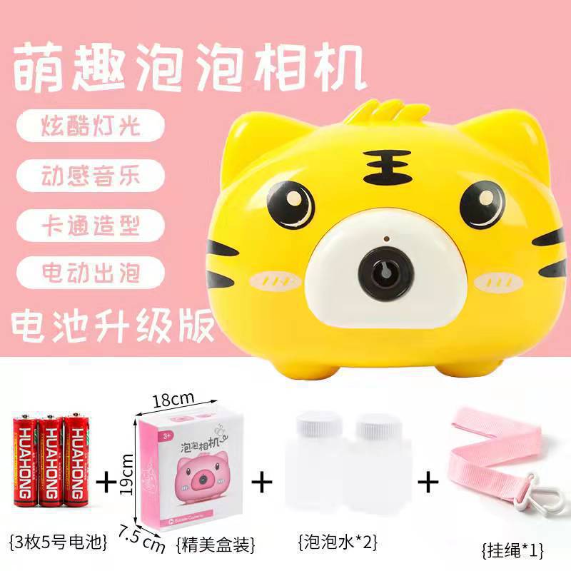 • 배터리가 포함된 대형 상자에 노란색 호랑이 버블 머신