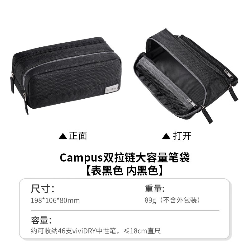 • 【PC3.33D】더블 지퍼 필통-블랙