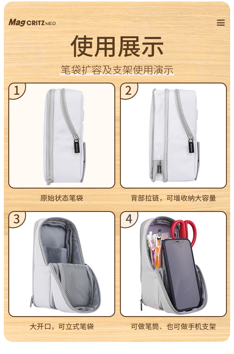 • 【PCS13.3LS】【Yi.Mi Xin Chun】대형 오픈 필통 라이트 브라운