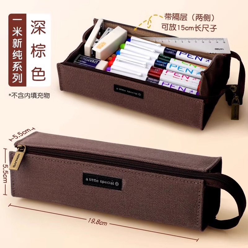 • 【PCS1.33DS】【Yi.Mi Xin Chun】대형 오픈 필통 다크 브라운