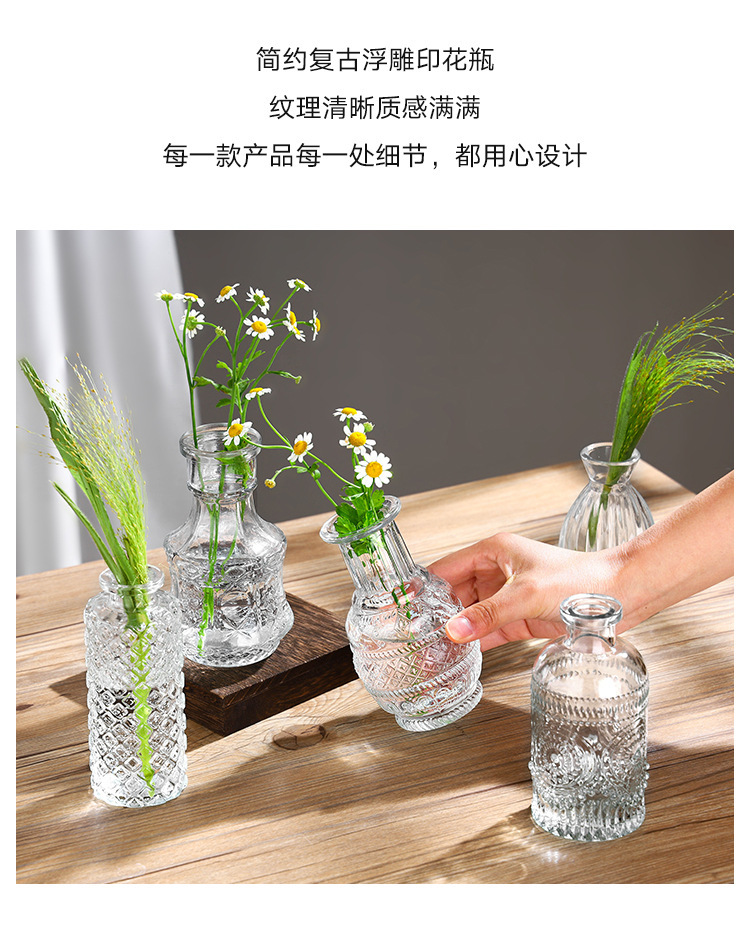 대외 무역 도매 창조적 인 작은 꽃병 유리 하이 엔드 느낌 홈스테이 중간 고대 꽃병 s 스타일 높은 가치의 식탁 장식품스토어 가기