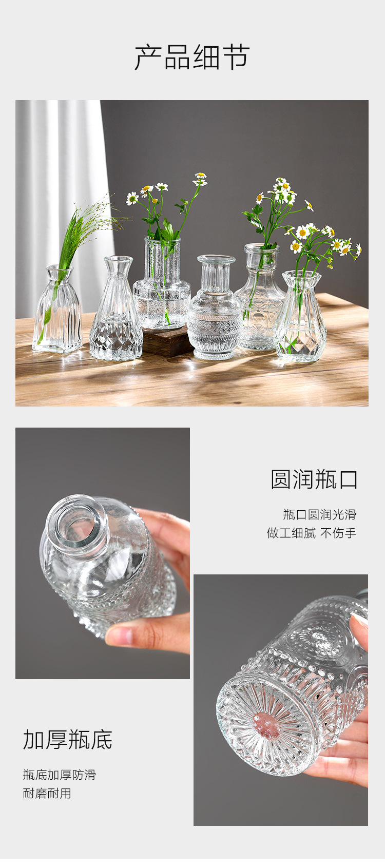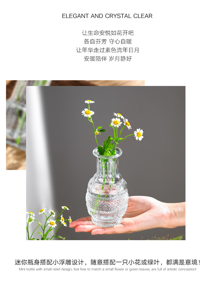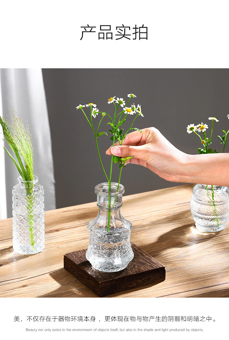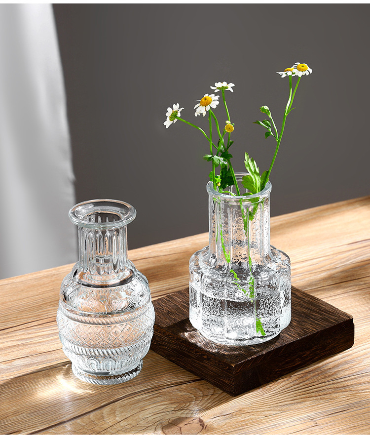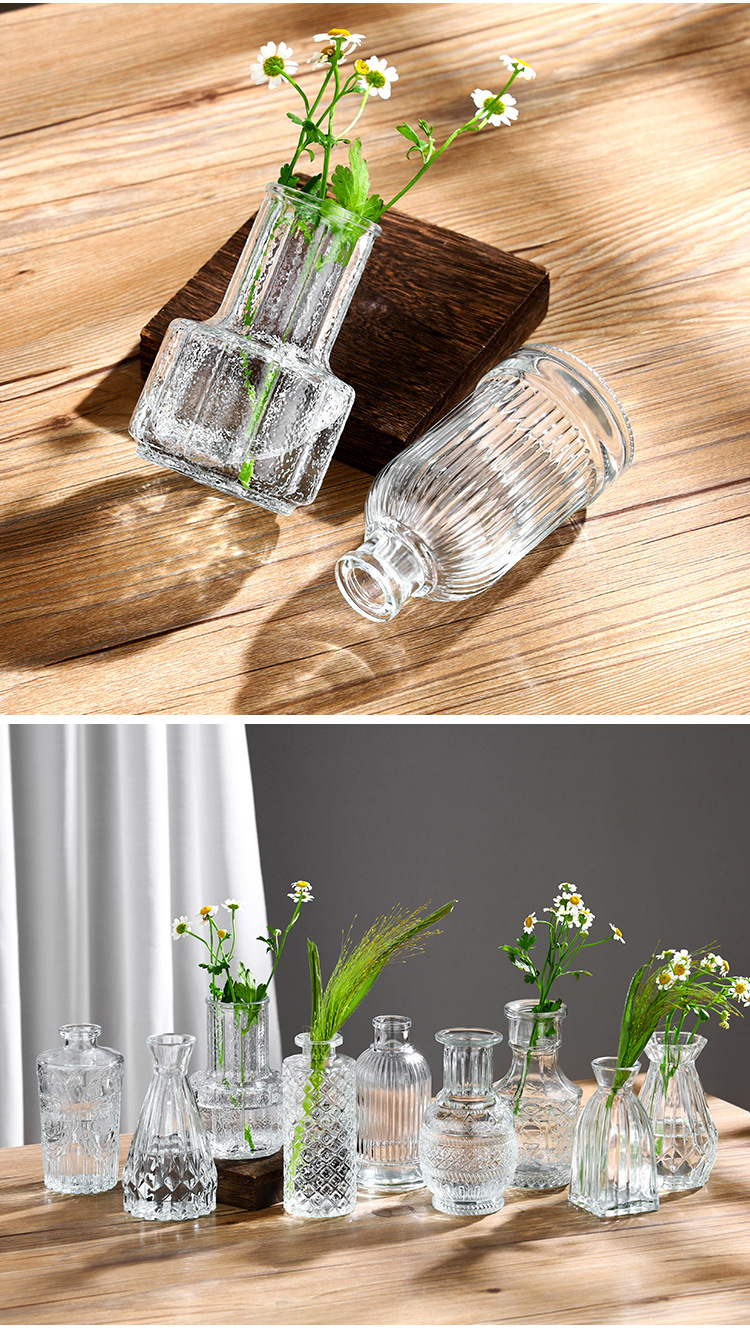 대외 무역 도매 창조적 인 작은 꽃병 유리 하이 엔드 느낌 홈스테이 중간 고대 꽃병 s 스타일 높은 가치의 식탁 장식품