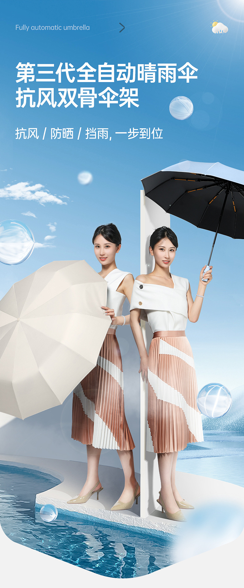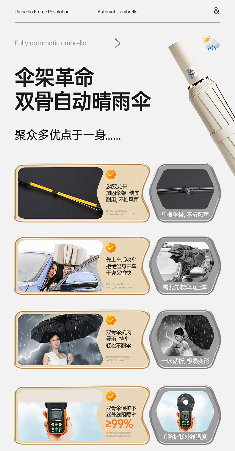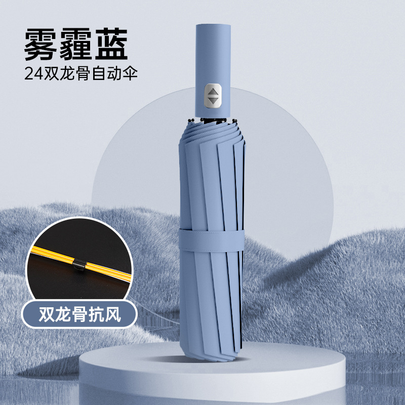 자동 3 중 우산 24 더블 드래곤 본 맑고 비오는 이중 목적 접이식 검은 고무 자외선 차단제 폭풍 방지 비즈니스 양산 광고 우산스토어 가기