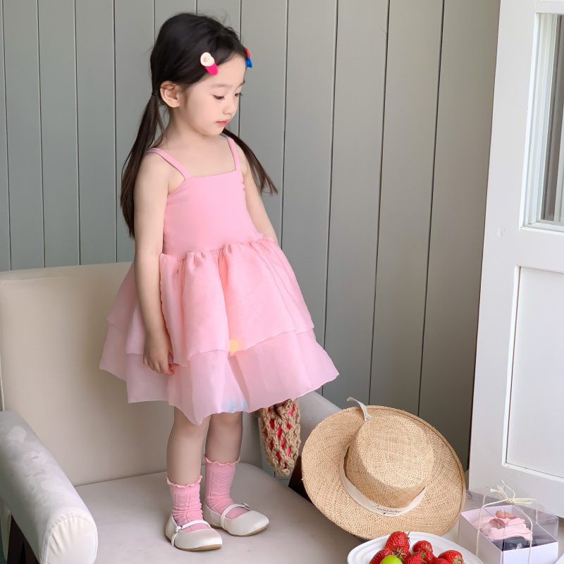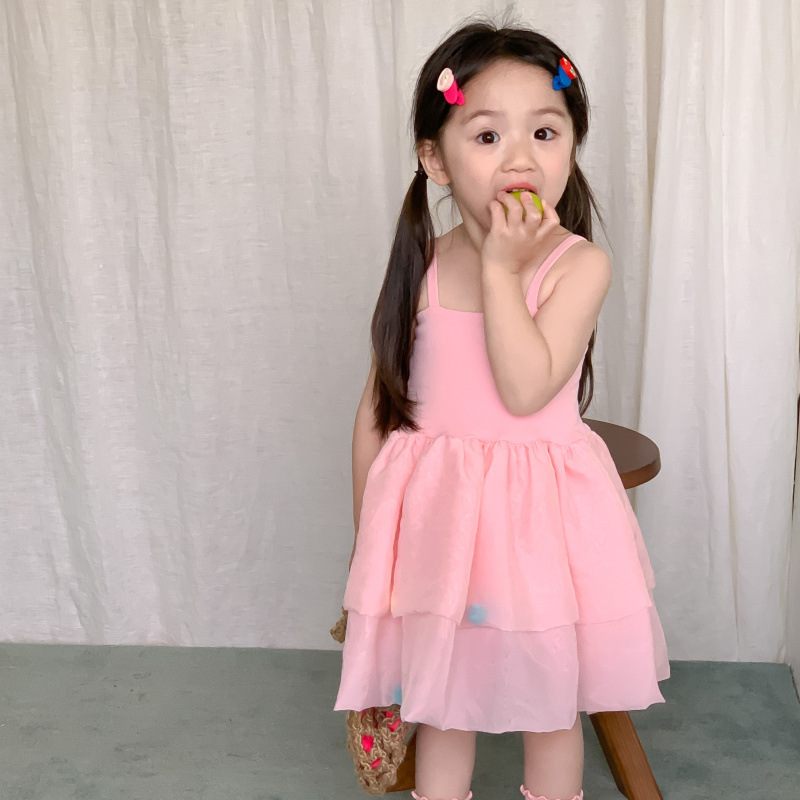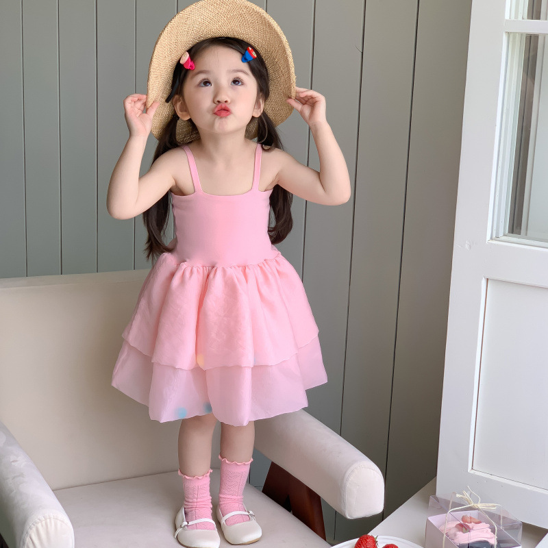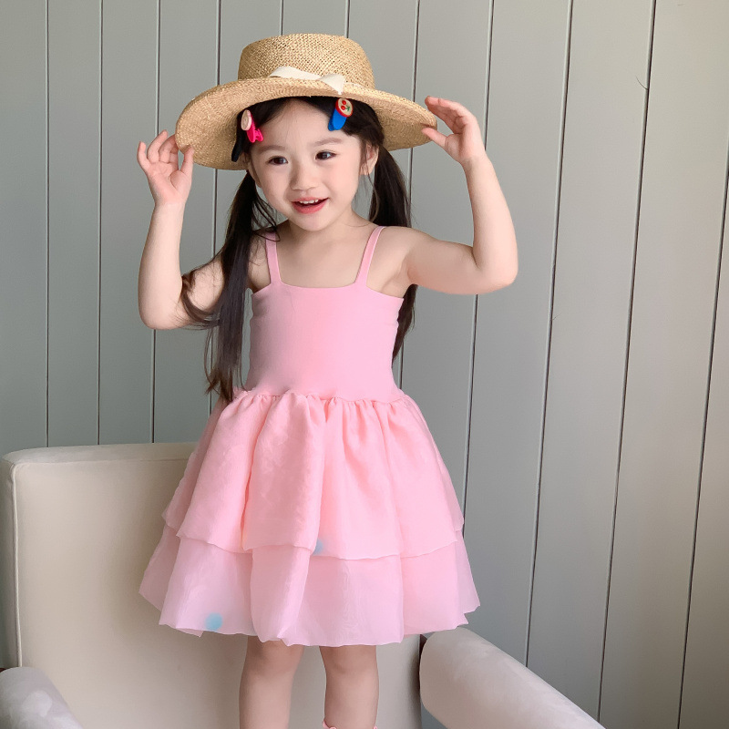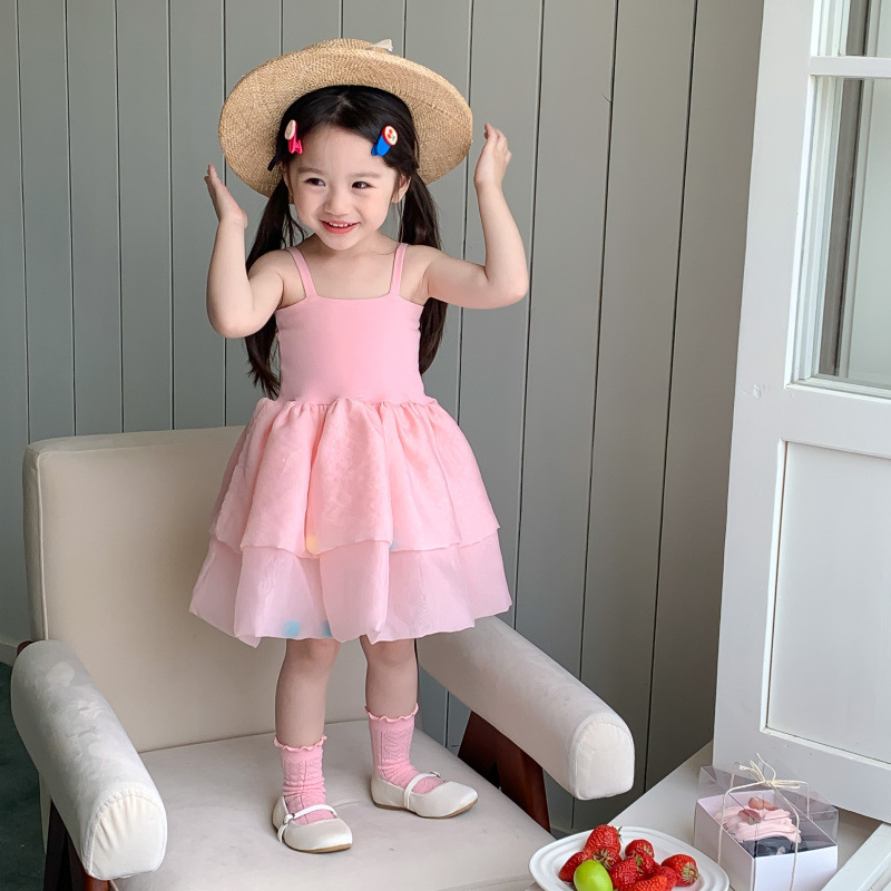 여자 드레스 여름 2024 새로운 한국어 스타일 아동 의류 여자 투투 스커트 아기 여름 드레스 공주 드레스 서스펜더